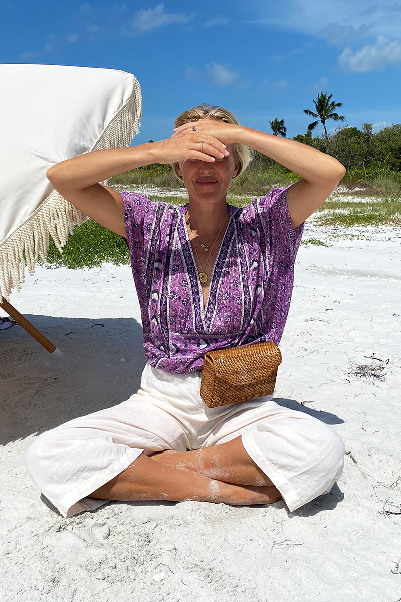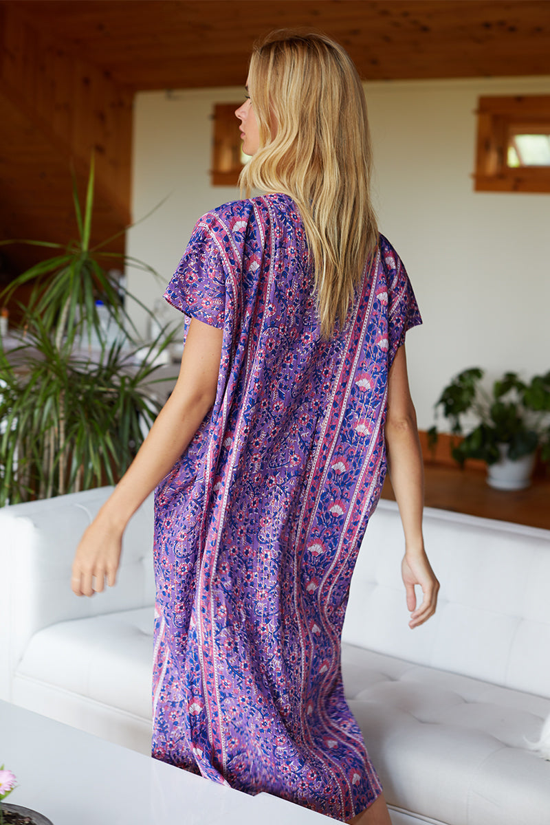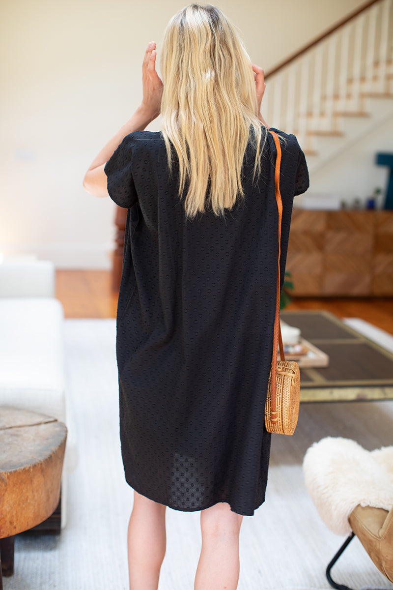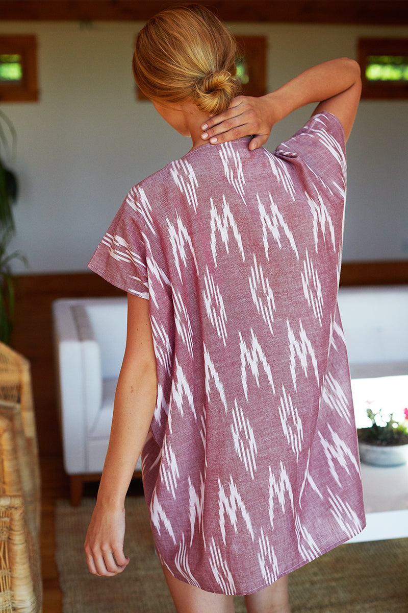 Perfect for errands around town, lounging at home and days at the beach. Organic cotton Hand dyed using low impact dye 11" Neckline opening w/ hook + eye closures Center back...
