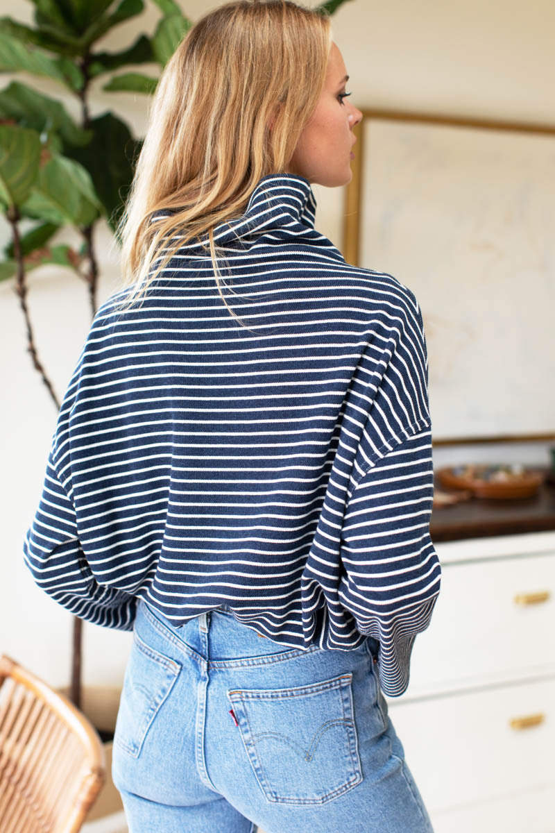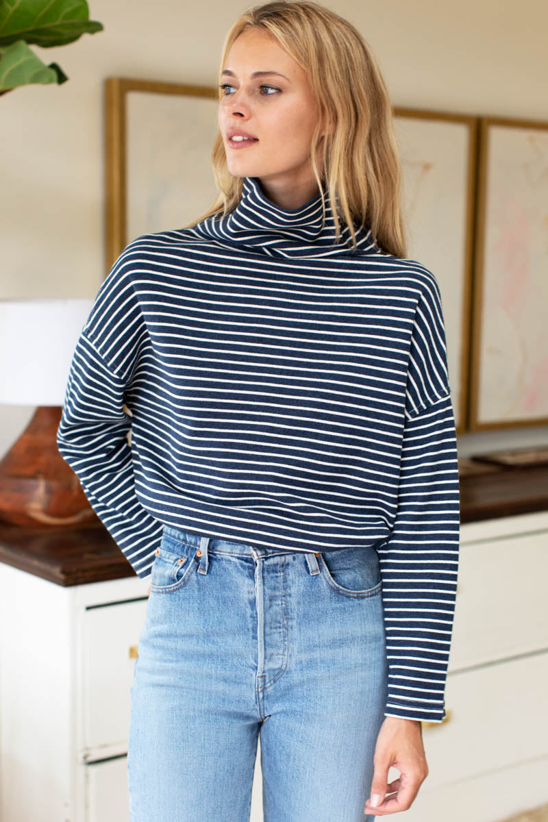 1960s Mod style funnel neck top. Boxy fit with a drop shoulder, great for layering over dresses and with all bottoms. Cotton Boxy drop shoulder style pullover top Center...