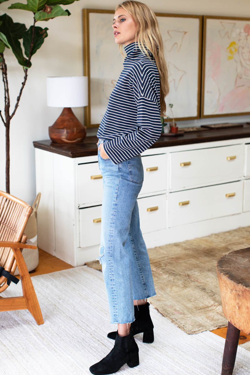 Inspired by vintage sailor trousers and the centuries-old denim legacy of the South of France, this army jean blends utilitarian heritage with a modern, feminine fit. Fitted through the top...