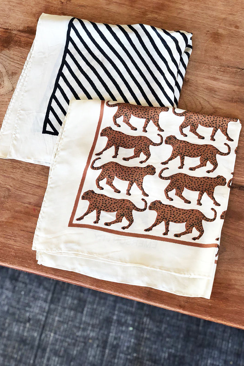 Silk twill Hand block printed w/ low impact dye Made in Rajasthan, India Measures 24" X 24"