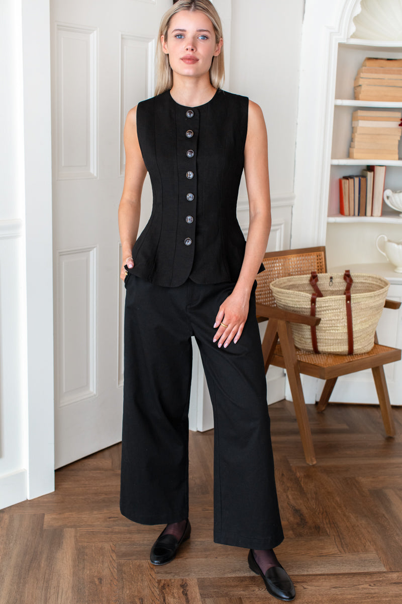 Tencel linen twill with fluid drape Wide leg Pleats at waist Pull on styling Unlined Made in NYC XXS: Waist 24 3/4”, Hip 44”, Inseam 28” XS: Waist 26 3/4”,...