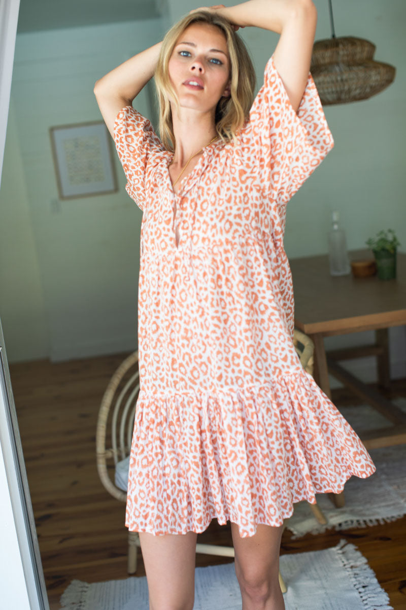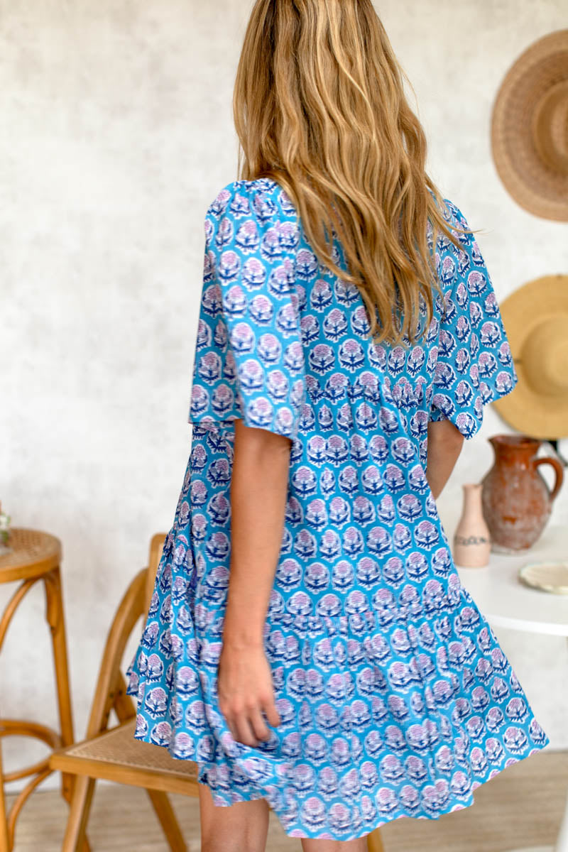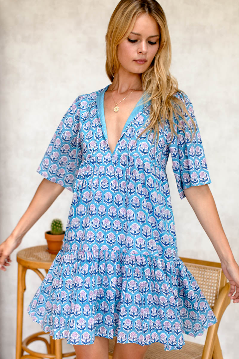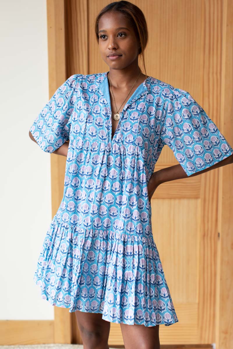 Good to have a little dress that’s airy + special Made with 100% Organic cotton Hand block printed using low impact dye Easy/breezy fit Lined Center back length 34" Neckline...