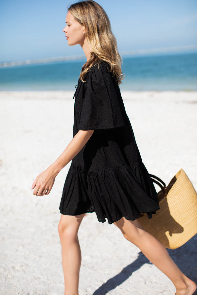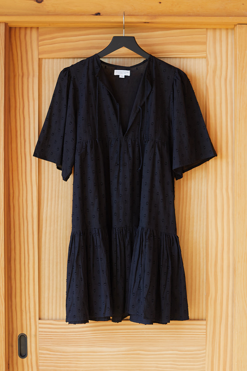 Swiss dots, good to have a little summer dress that’s airy + special + festive. Organic Embroidered Cotton - swiss dots Easy/breezy fit Lined Model is 5'9" and wearing size...
