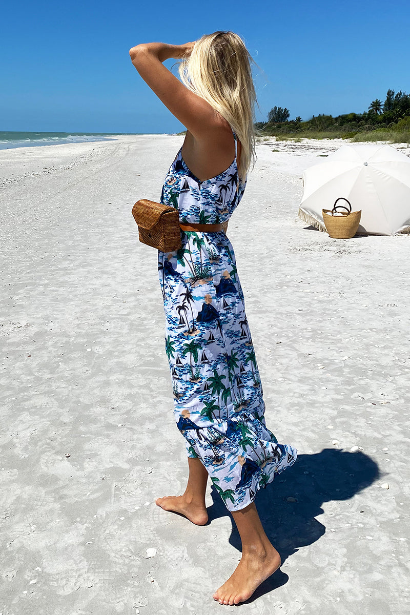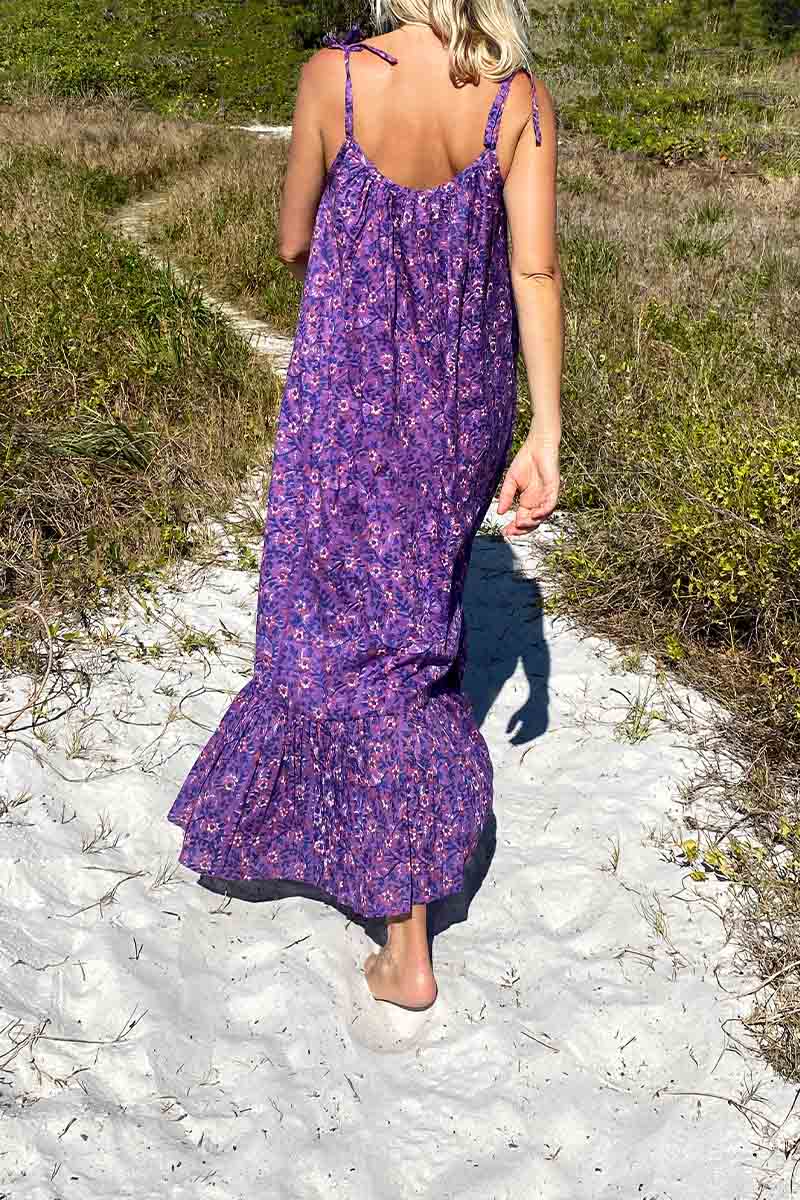 Organic cotton Hand printed and dyed using low impact dye Adjustable tie shoulder straps allows for a higher or lower neckline Lined Model is 5'9" and wearing size xs/s Made in Rajasthan,...
