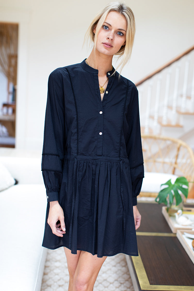 Good to have a little dress that’s airy + special + festive. Organic cotton Hand block printed using low impact dye Easy/breezy fit Center back length 34" Neckline opening 9.5"...