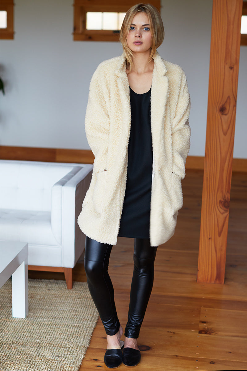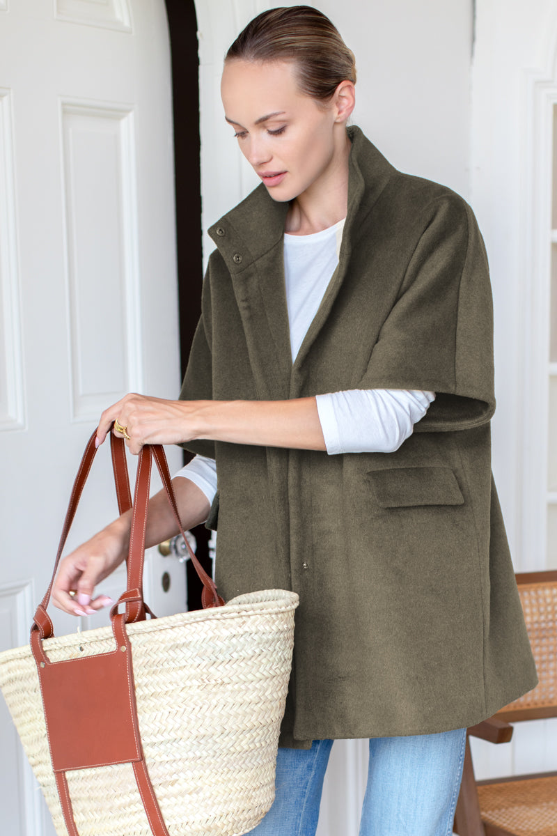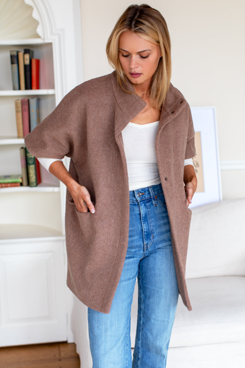 Super Soft Cashmere Wool Blend Fully lined Snap front closure Front welt pockets Dry Clean Made in NYC Model is wearing a size small Runs oversized. Size down 1 size...