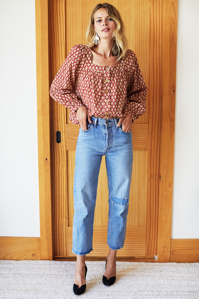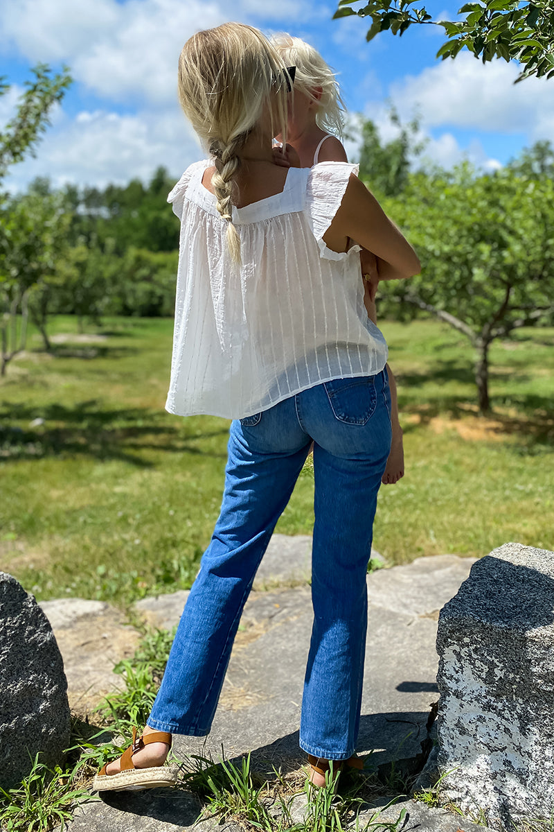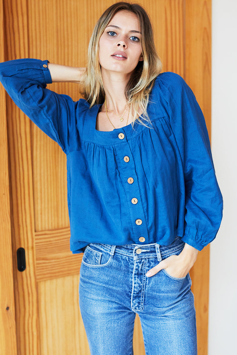 Organic Cotton Hand block printed with low impact dye Button front Flutter sleeve Lined Relaxed fit through body Hand wash cold, line dry Made in Rajasthan, India Size XS: Bust...