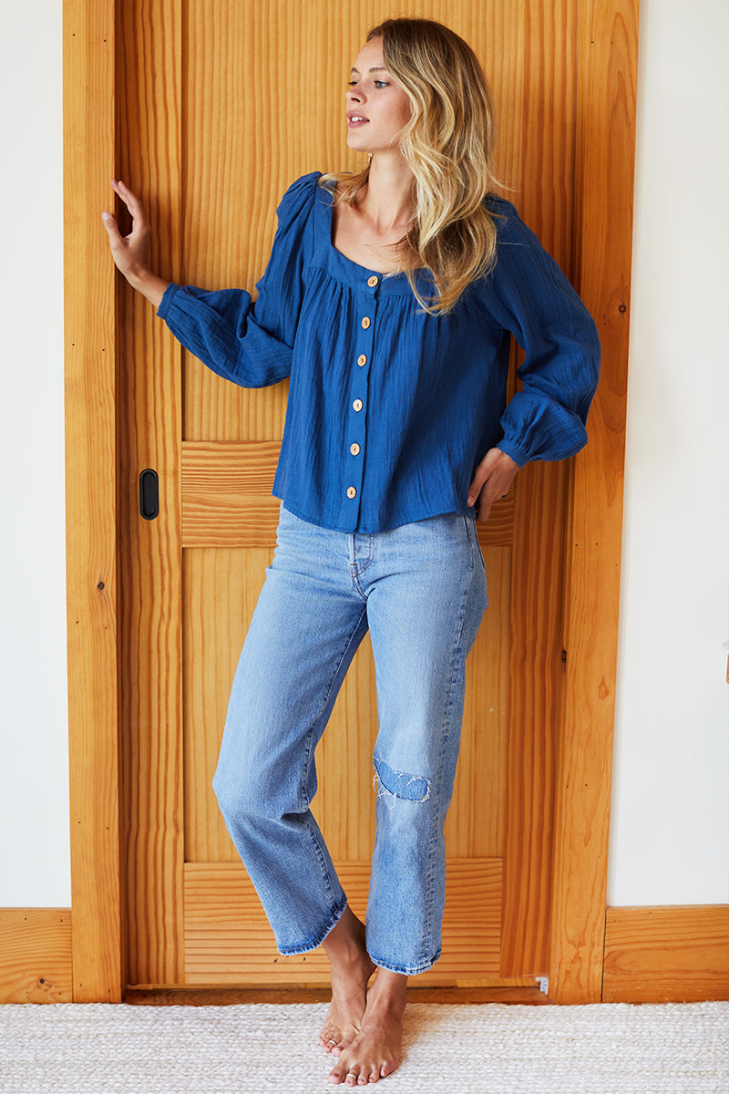 Organic Cotton Gauze Hand dyed using low impact dye Wooden button front shirt Lined Hand wash, line dry Made in Rajasthan, India Size XS: Bust 40”, Center Back Length 21.5”...