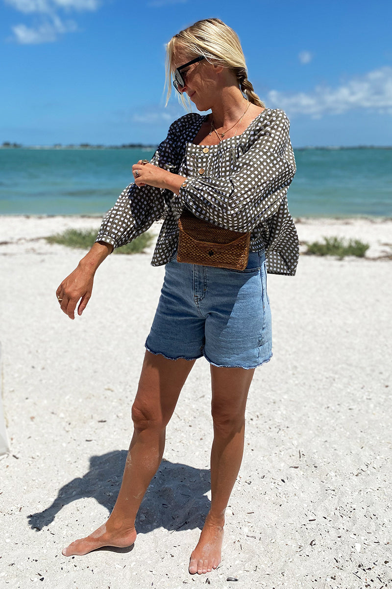 Organic Cotton Hand block printed with low impact dye Wooden button front shirt Flutter sleeve Lined Relaxed fit through body Hand wash cold, line dry Made in Rajasthan, India Size...