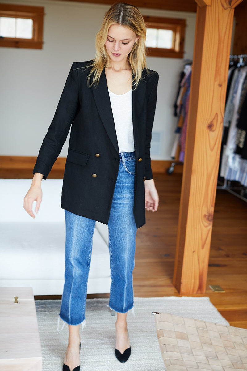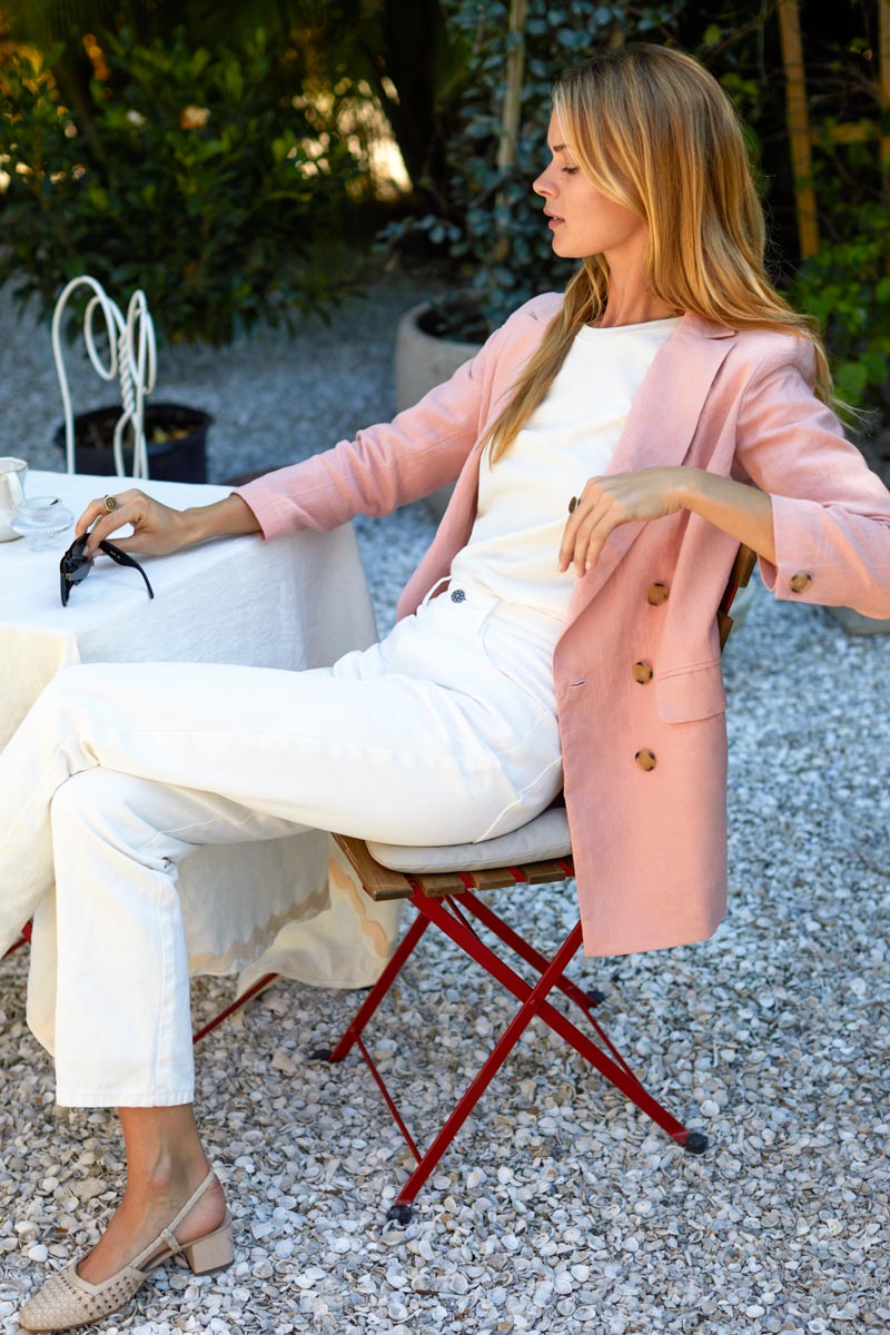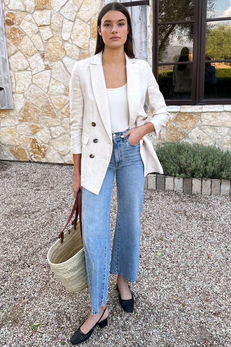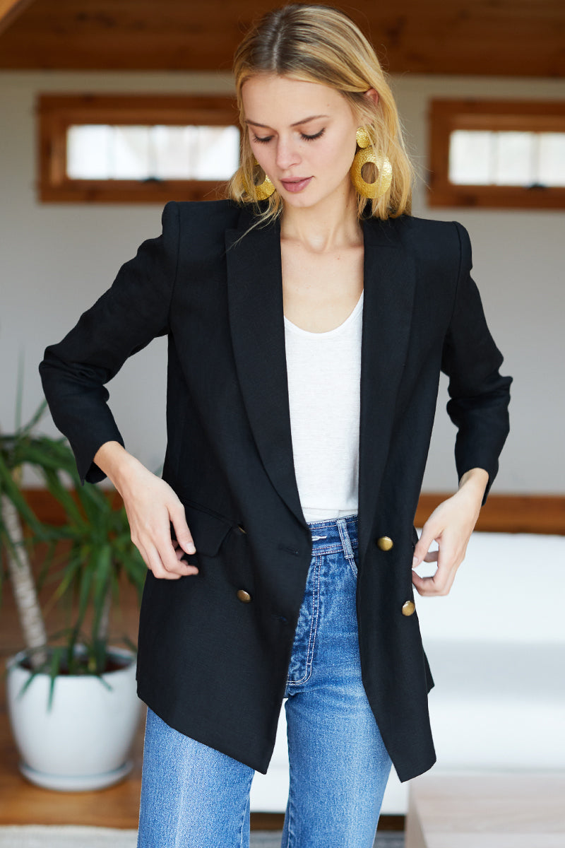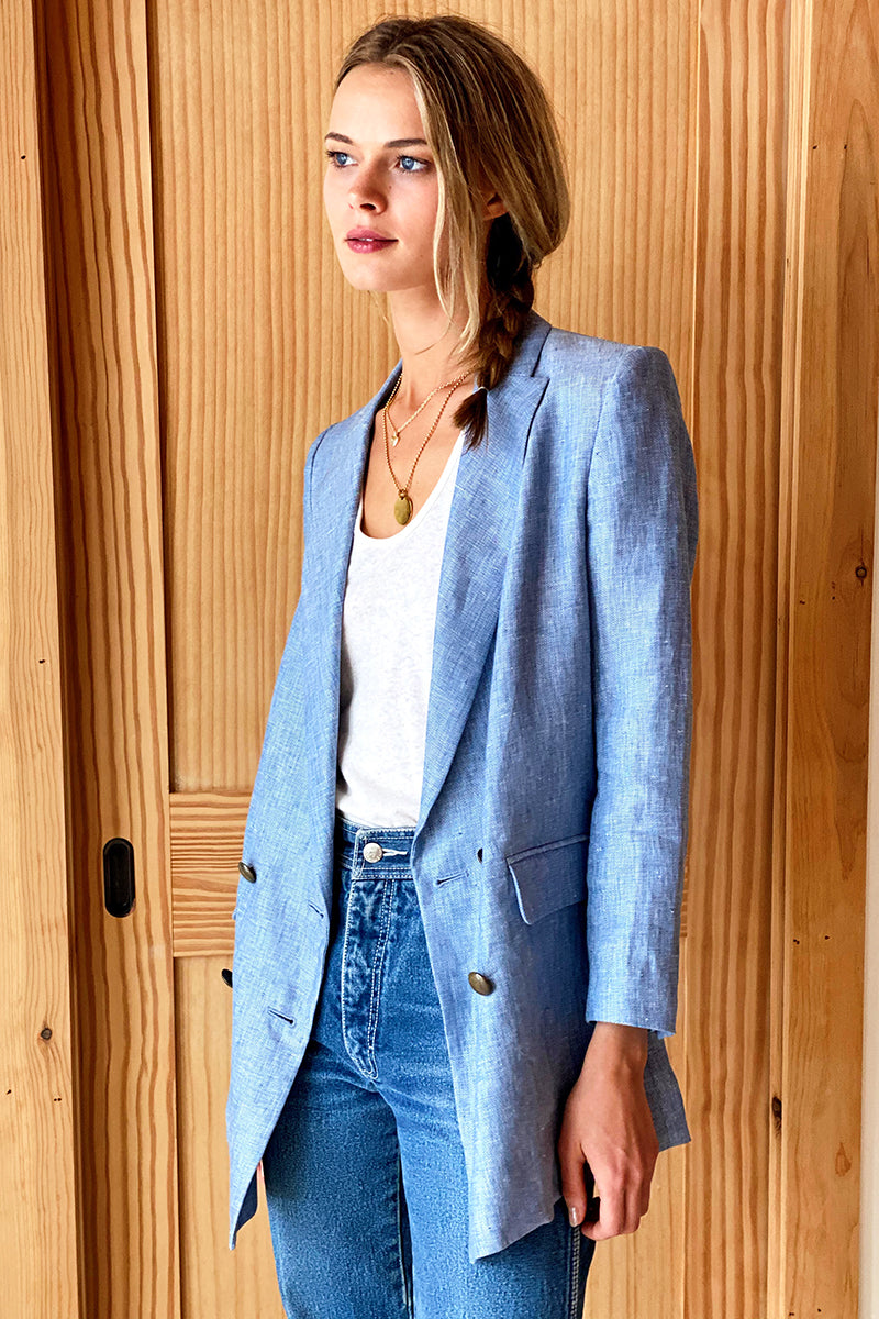 forever wardrobe, with denim, to work, with your favorite dress, season after season 100% Linen 6 Button front Fully Lined Double breasted Front flap pockets Notched lapel Tailored bracelet length...
