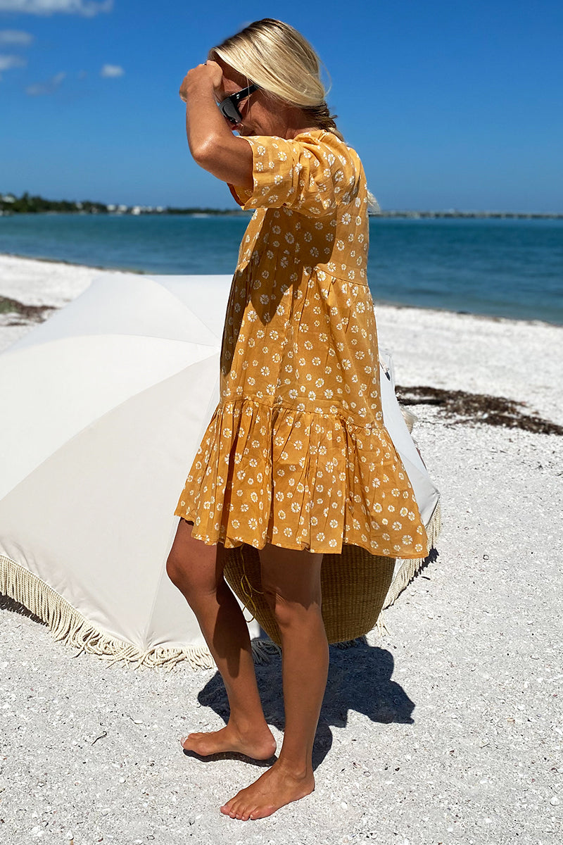 Cotton w/ swiss dots Low impact dye Slightly sheer, easy/breezy fit Model wearing a size small Neckline opening 11" w/ hook + eye closures Made in Rajasthan, India Hand wash cold,...