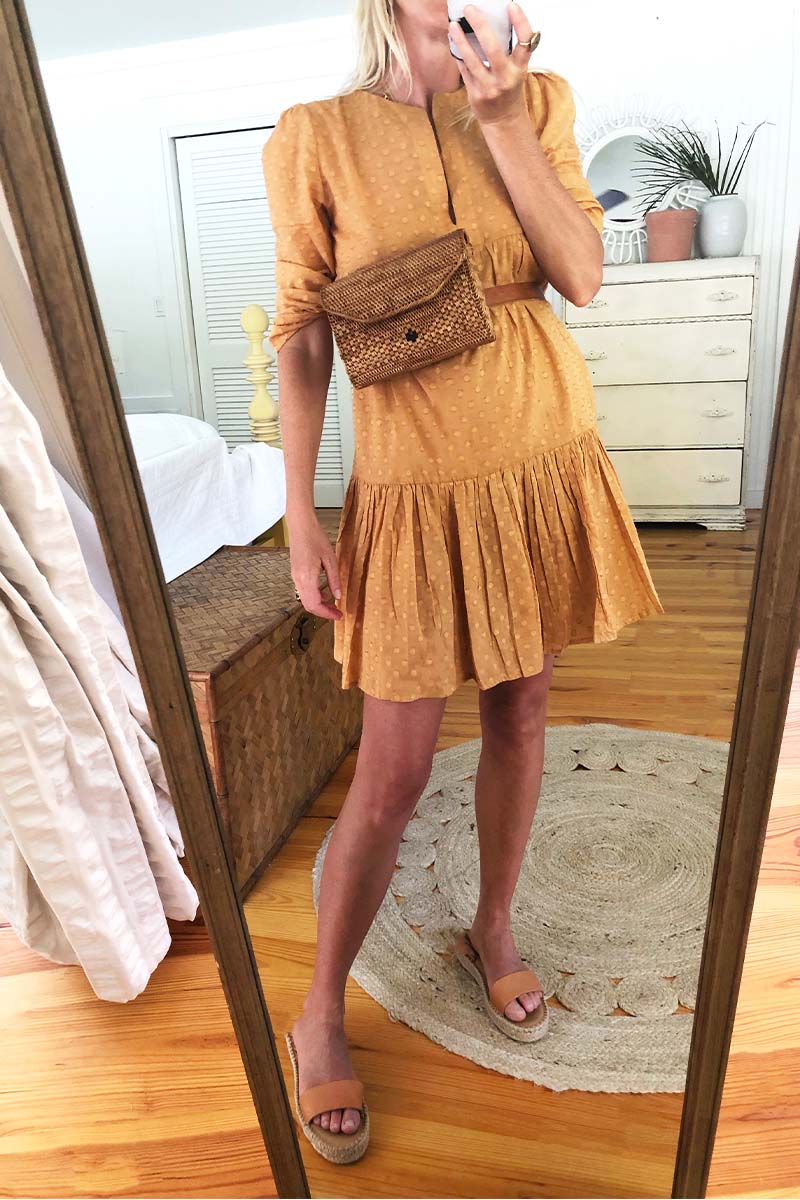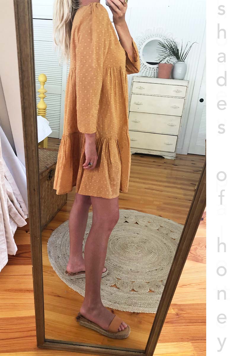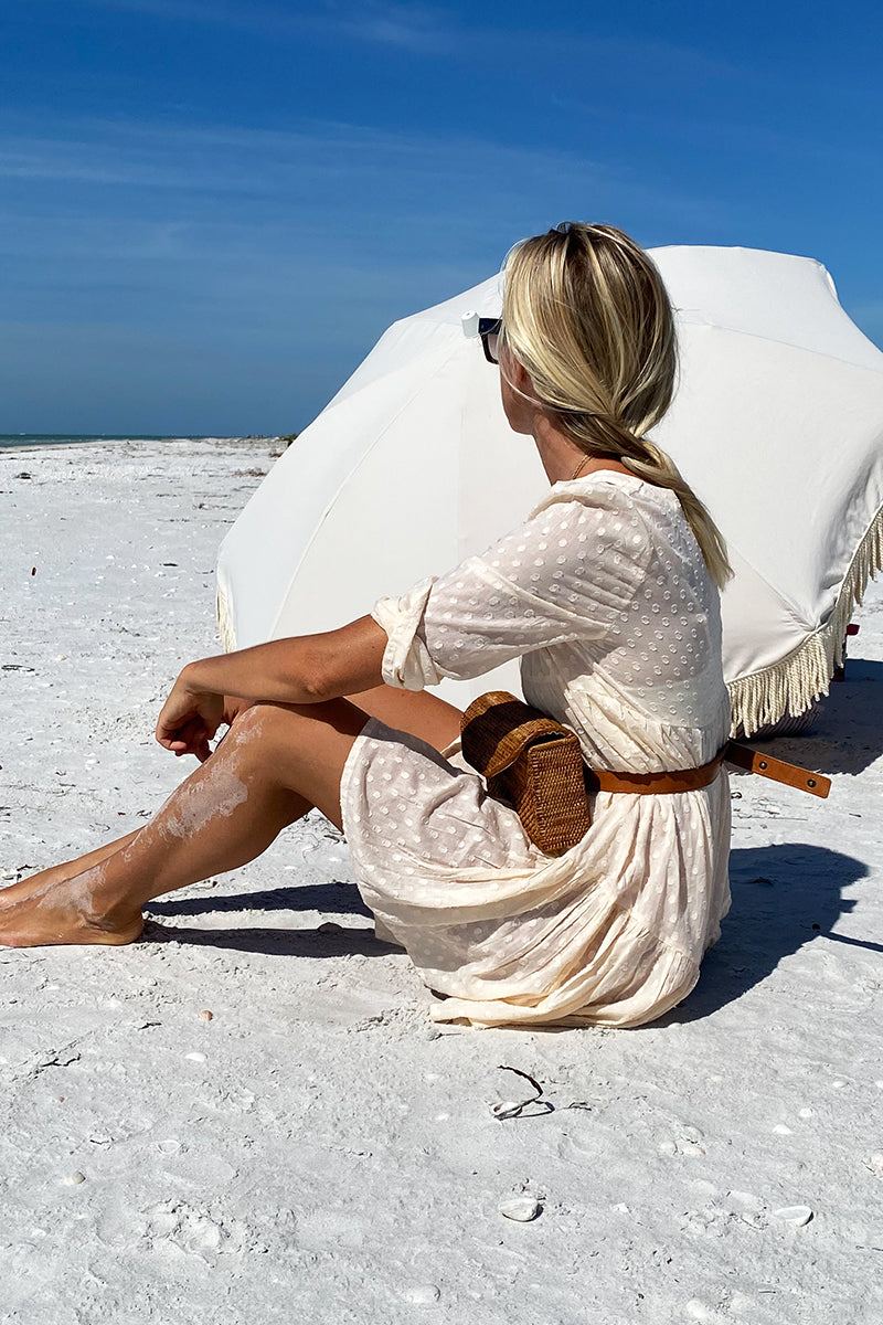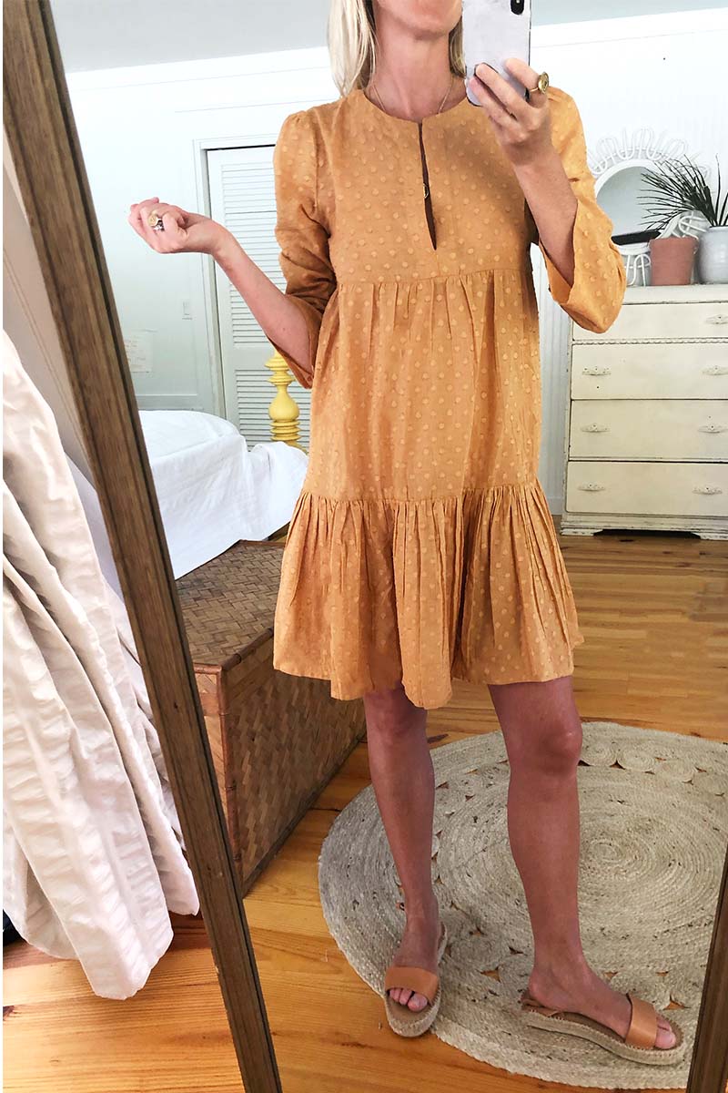 Cotton w/ swiss dots Salt color is a pale neutral with warm peach undertones, reminiscent of Himalayan sea salt Low impact dye Moderately sheer, easy/breezy fit Models both wearing a size...