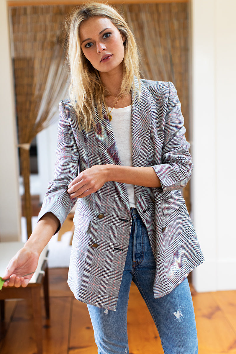 Forever wardrobe, with denim, to work, with your favorite dress, season after season Linen Viscose 6 Button front Fully Lined Double breasted Front flap pockets Notched lapel Tailored bracelet length...