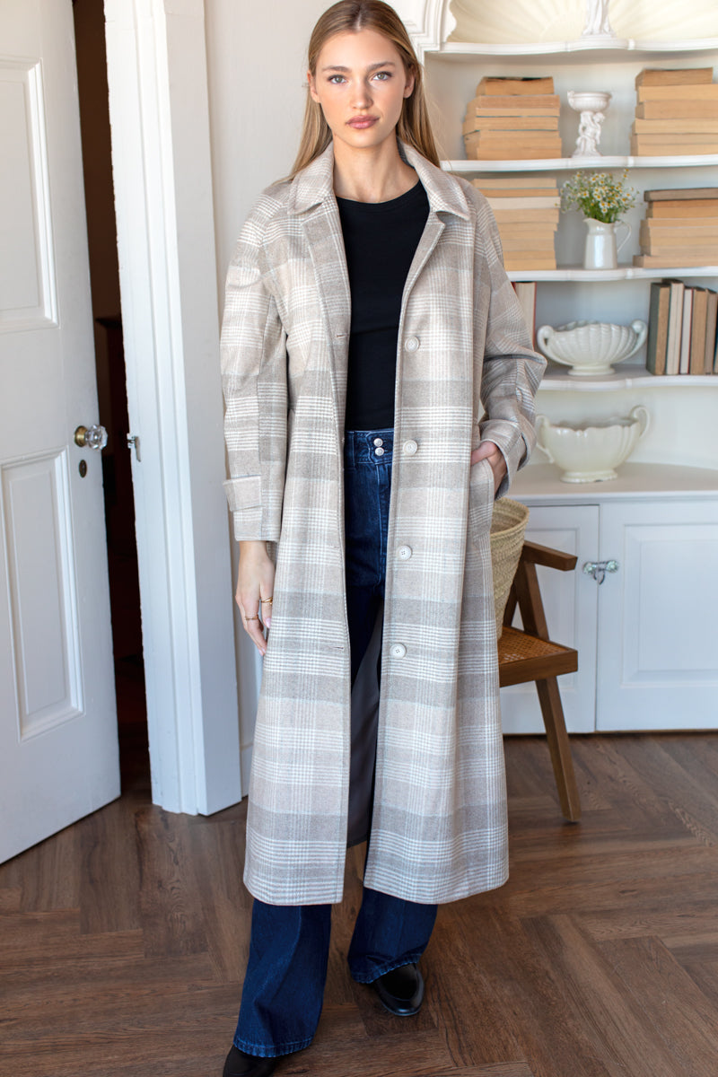 Wool cashmere Maxi length Button closures at front Notched lapel Adjustable cuff strap Angled welt pockets Lined Made in NYC XXS: Bust 39”, Hip 38 3/4”, Length 48 5/8” XS:...