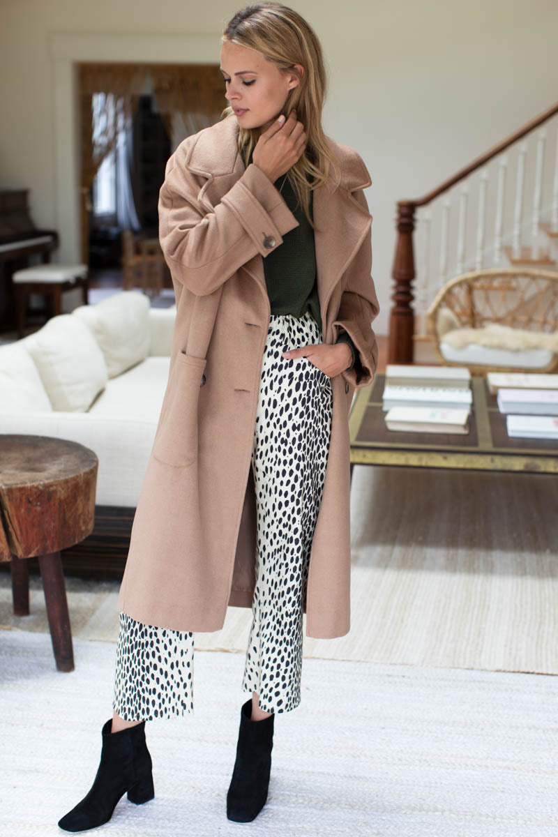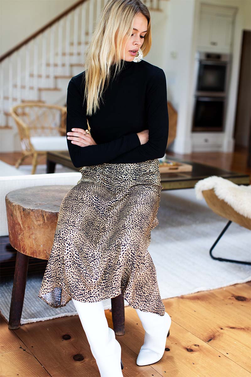 Super soft Merino wool Turtleneck Set in sleeve w/ a little puff shoulder Model is 5' 9.5" + wearing a size medium Dry Clean Made in LA Styled With Johnny...