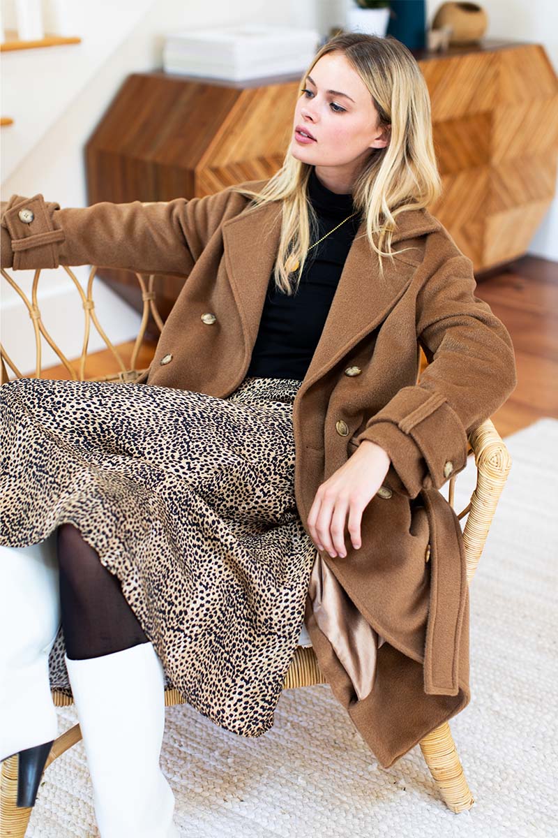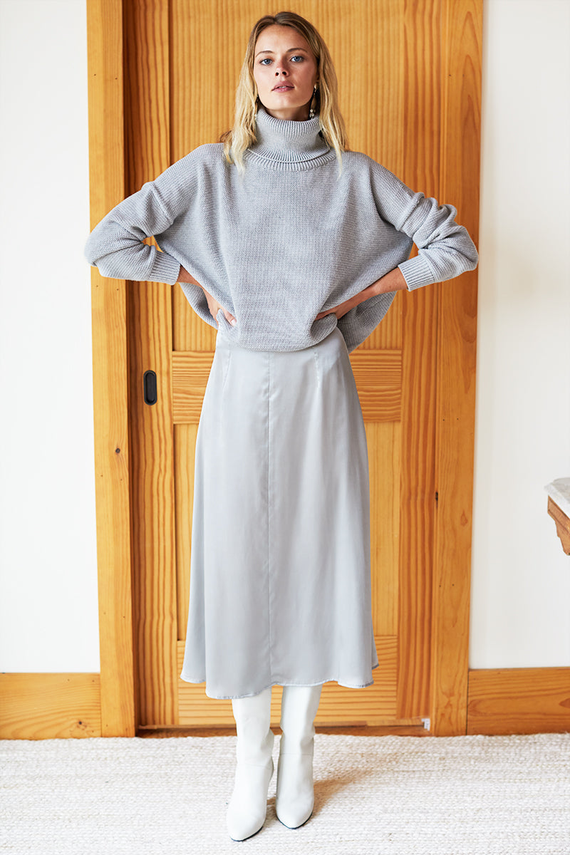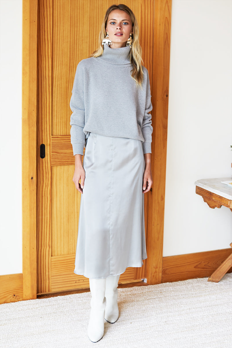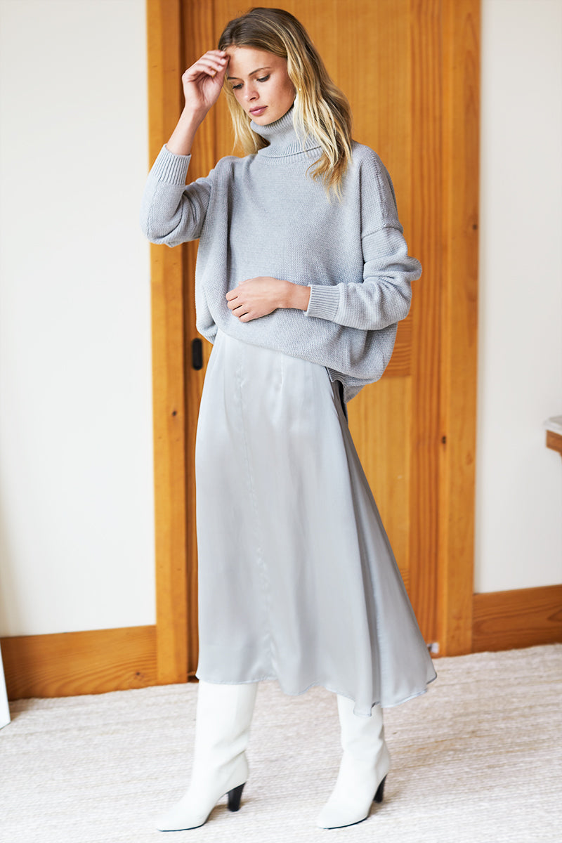 Super soft Merino wool Turtleneck Set in sleeve w/ a little puff shoulder Model is 5' 9.5" + wearing a size medium Dry Clean Made in LA Styled With: The...