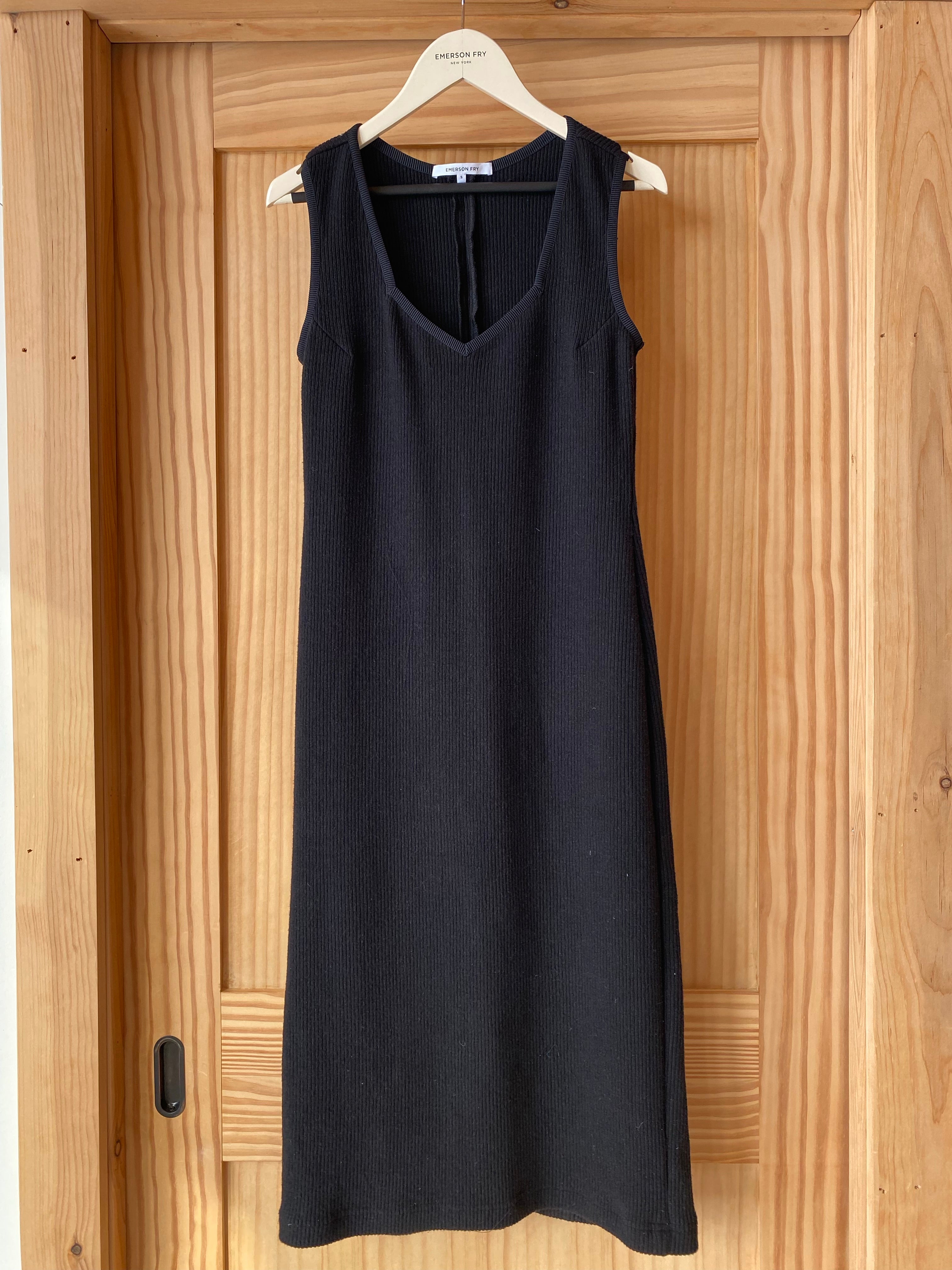 Signature EF Ponte knit Bound sweetheart neckline Cut out detail that wraps around side Unlined Back vent 44"Midi Length Pull on styling Made in NYC