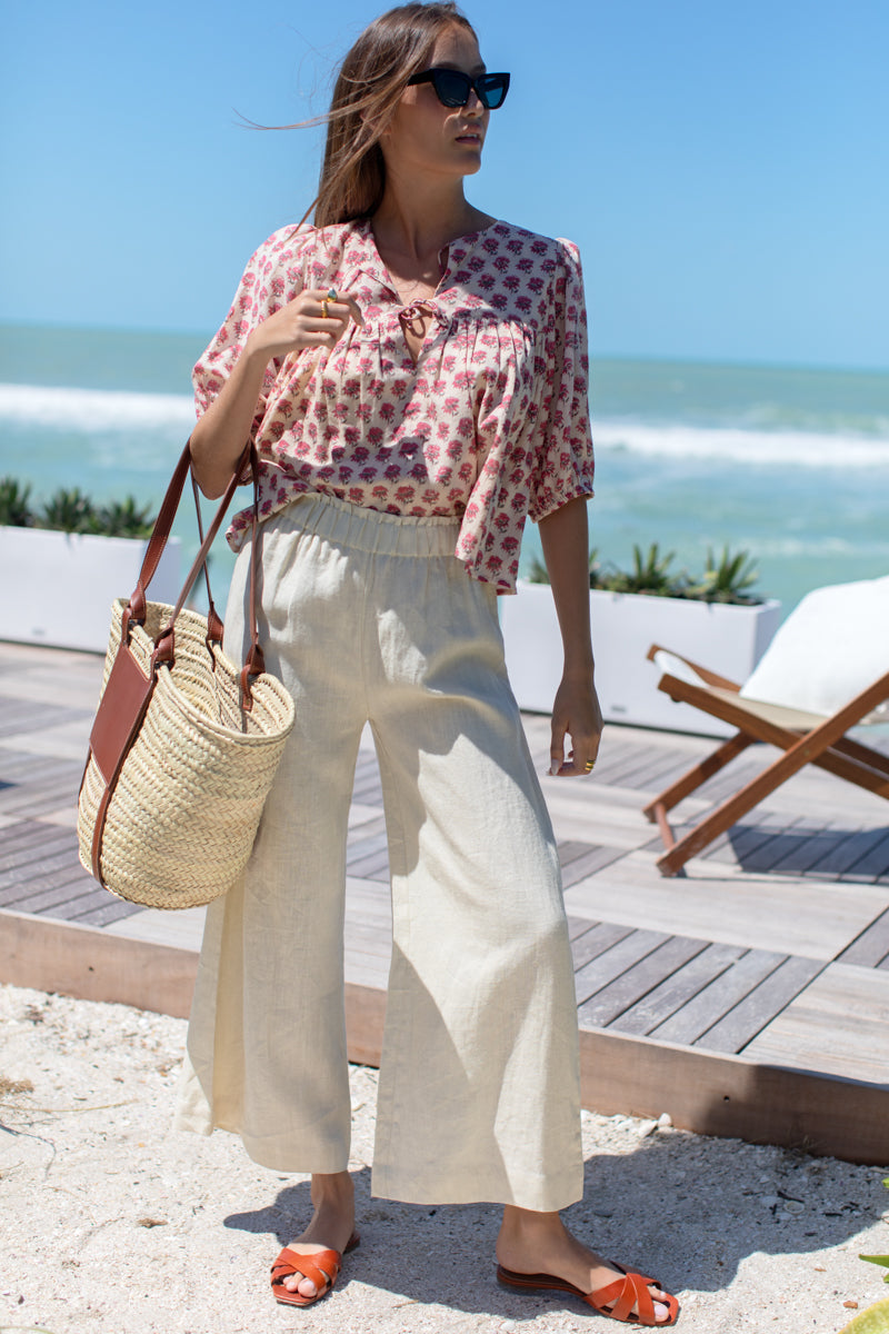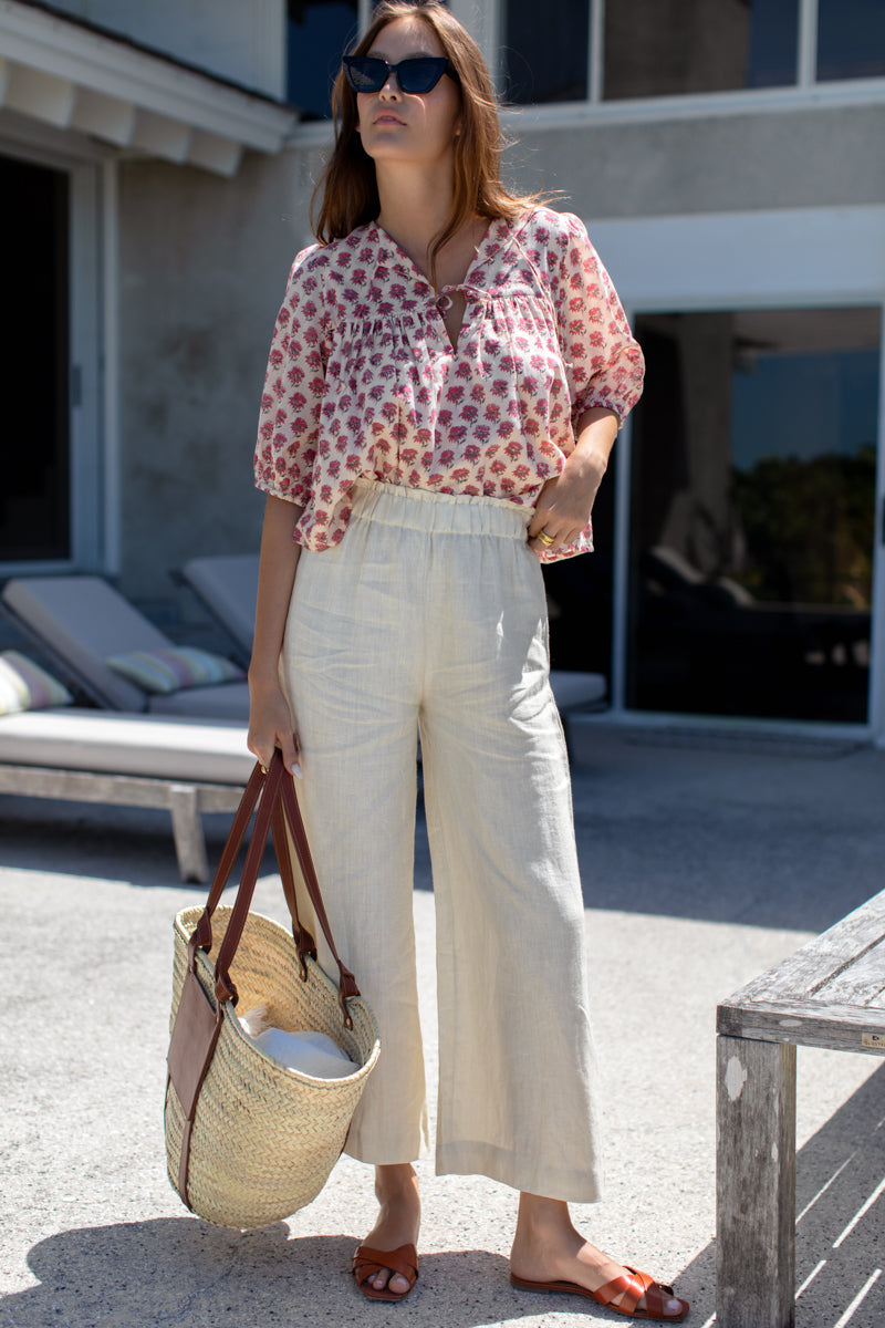 Modal (a natural, sustainable fabric) Hand block printed using low impact dye Elastic waist Wide leg Cropped fit Hand wash, line dry Made in Rajasthan, India XS:Waist 24",...