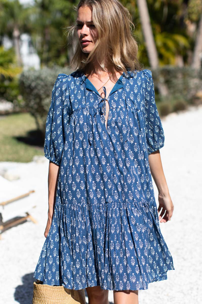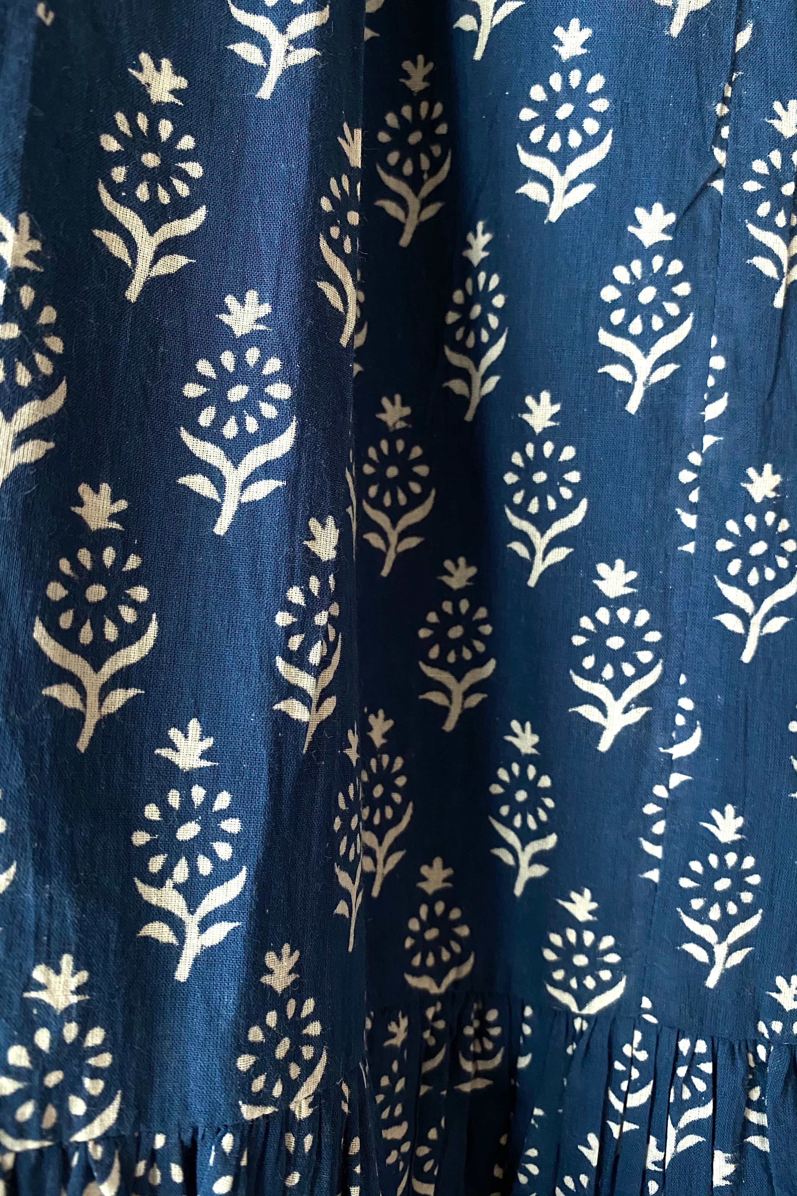 100% Organic Cotton Hand Block printed using low impact dye Yoked neckline with double ties Gathered little puff shoulder Elastic at cuff Lined Relaxed fit through body Hand wash...