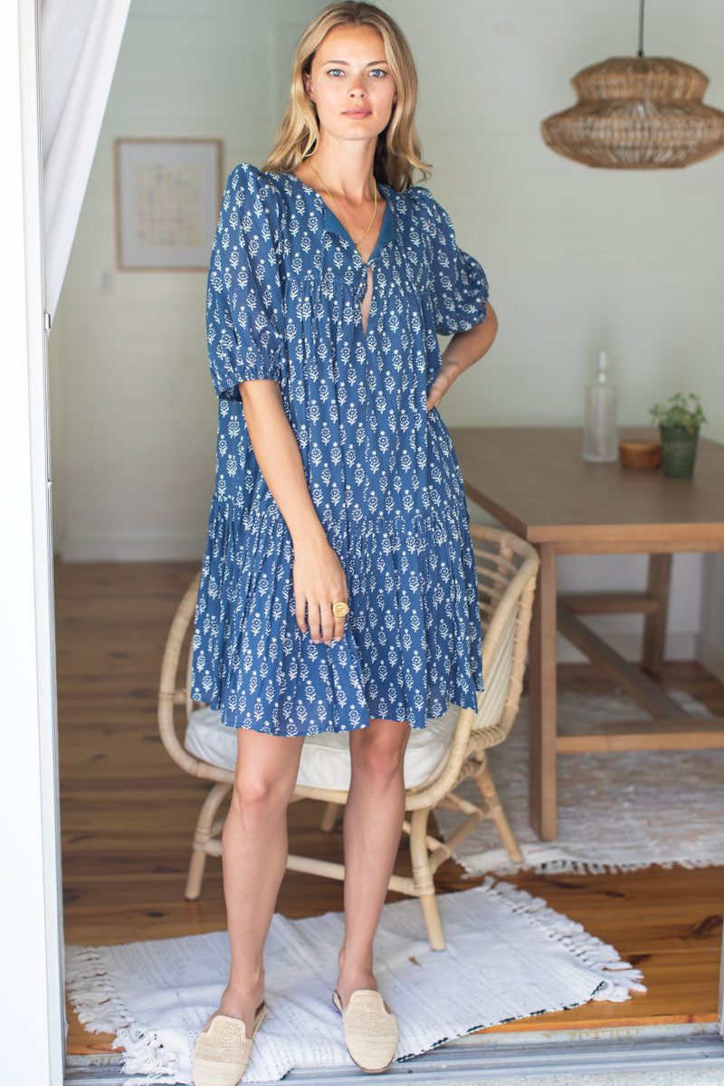Modal Hand Block printed using low impact dye Yoked neckline with double ties Gathered little puff shoulder Elastic at cuff Lined Relaxed fit through body Hand wash cold, gentle +...