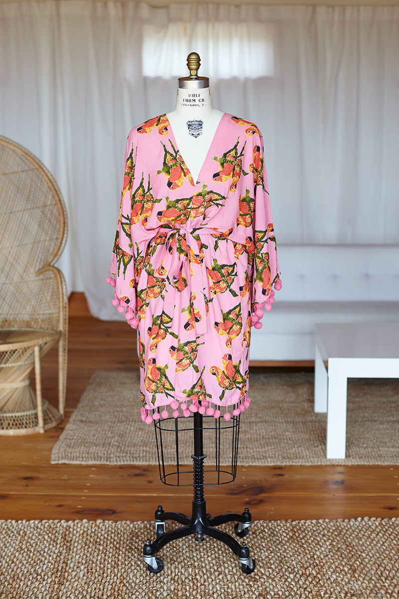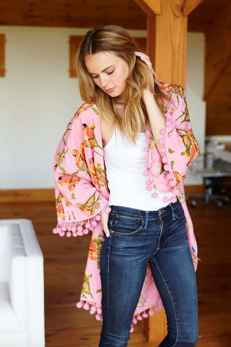 Fav for the beach, fav at the end of the day + absolutely wear to the party! 100% modal Cotton pom poms Hand printed using low impact dye...
