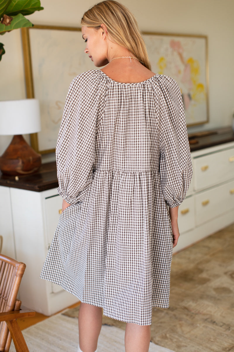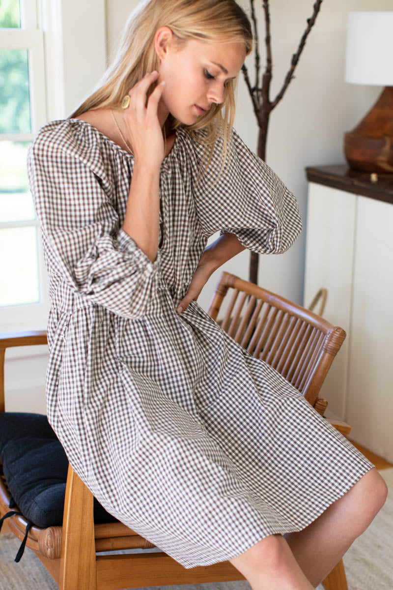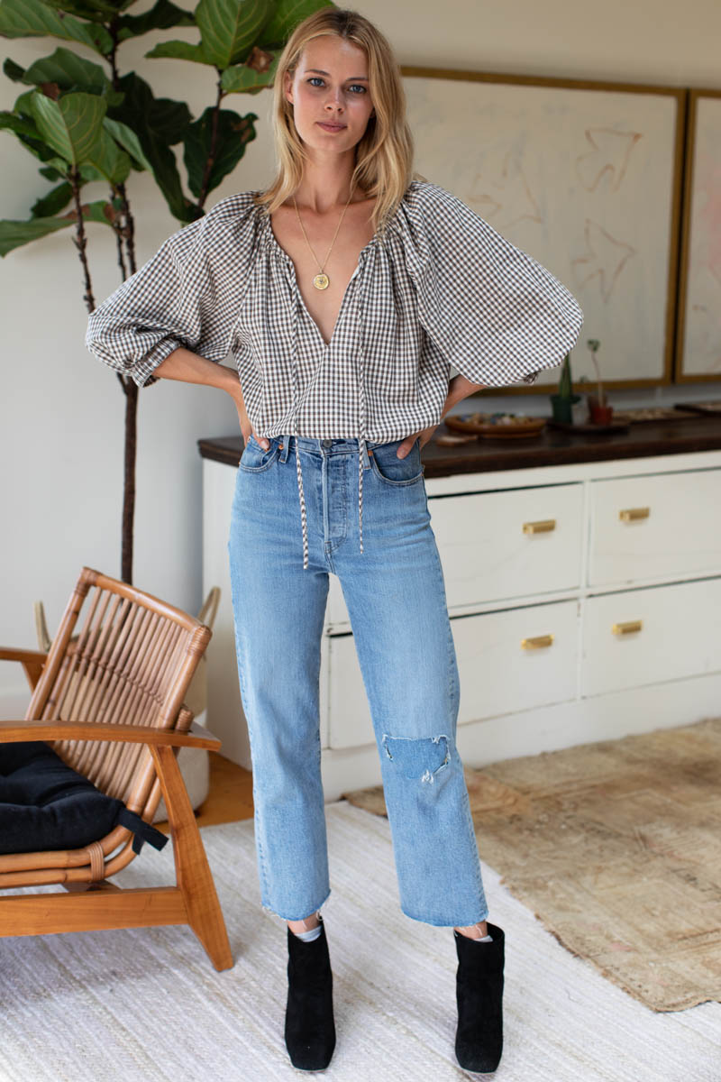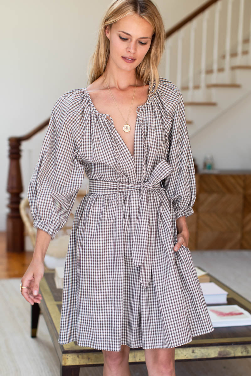 100% Cotton Gingham Shirred, bound neckline Keyhole and tie detail Blouson style full sleeves Gathered elastic cuff Model is a size XS/S and wearing a size Small for a more...