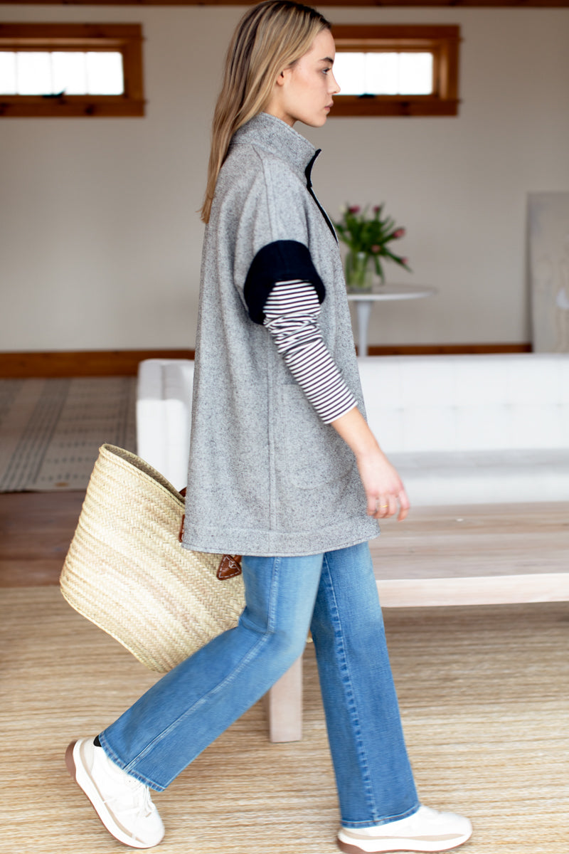 Organic cotton Rib knit Raglan sleeve Funnel neck is 4 1/2" high 5" side seam slits at hem Model is wearing a size small Hand wash and lay flat to...