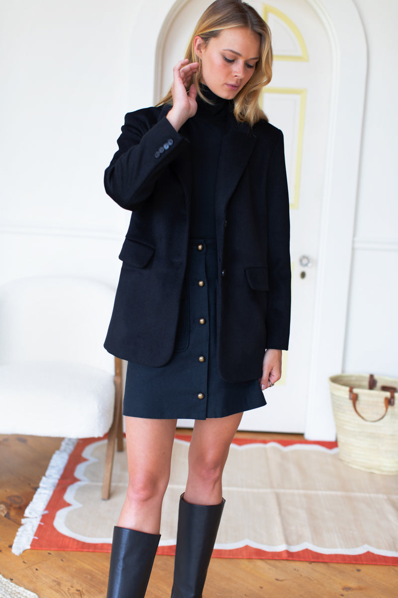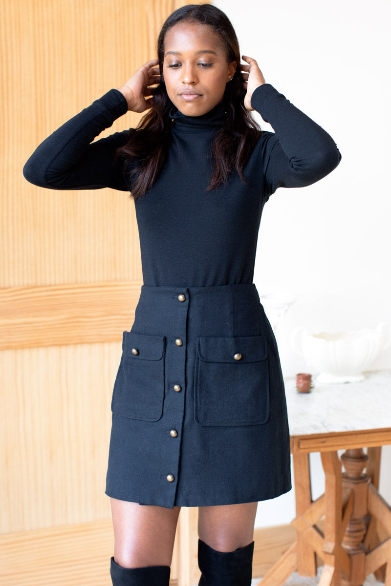 Organic brushed cotton twill 60s inspired Button front Patch pockets on front with flap and button detail Lined Made in NYC XXS: 23" Waist, 34" Hip, 17.5" Length XS: 25"...