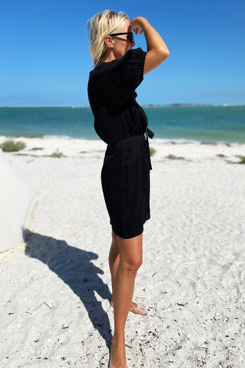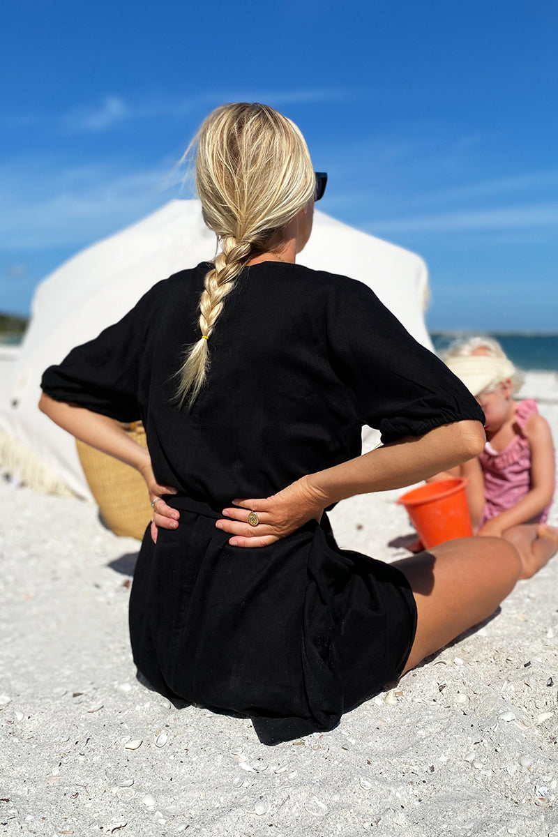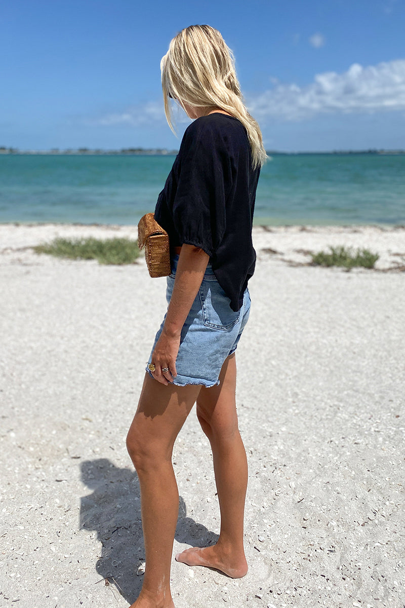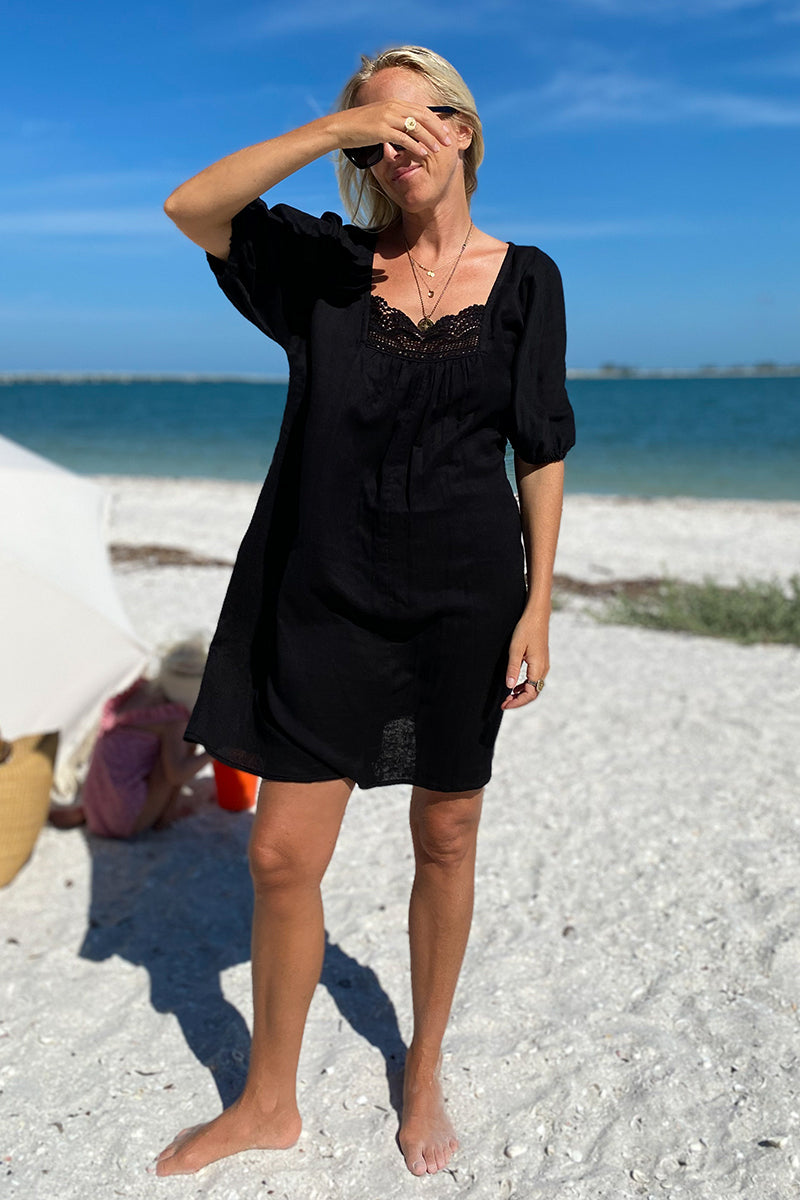Beachy, breezy little black top :) Double cotton gauze is a soft, airy fabric made from two layers of cotton gauze fused together Cotton lace neck line detail Elastic at...
