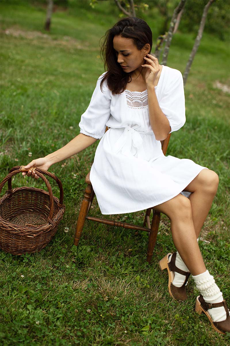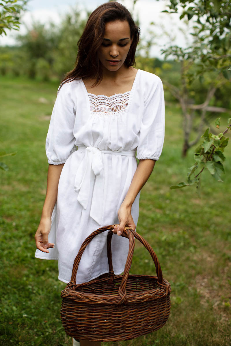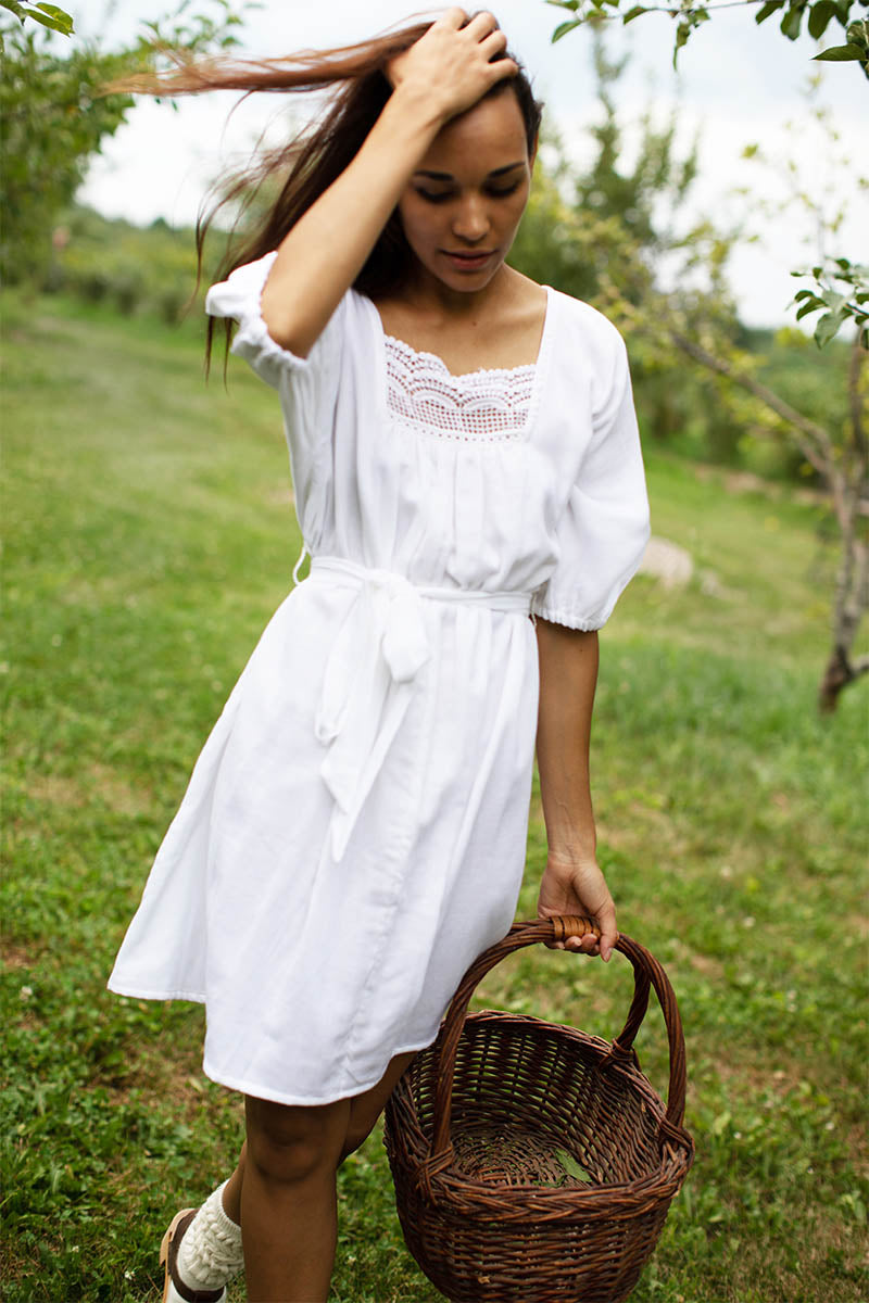Double cotton gauze is a soft, airy fabric made from two layers of cotton gauze fused together Cotton lace neck line detail Hand dyed using low impact dye Removable tie...