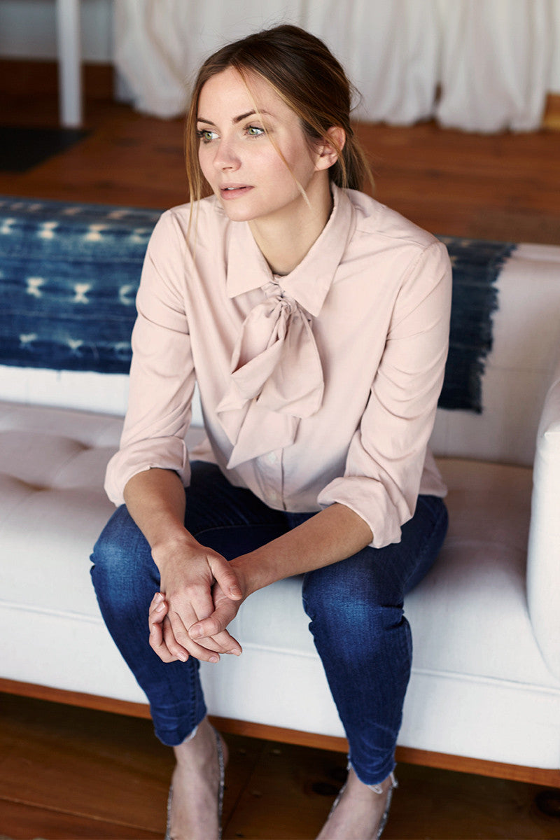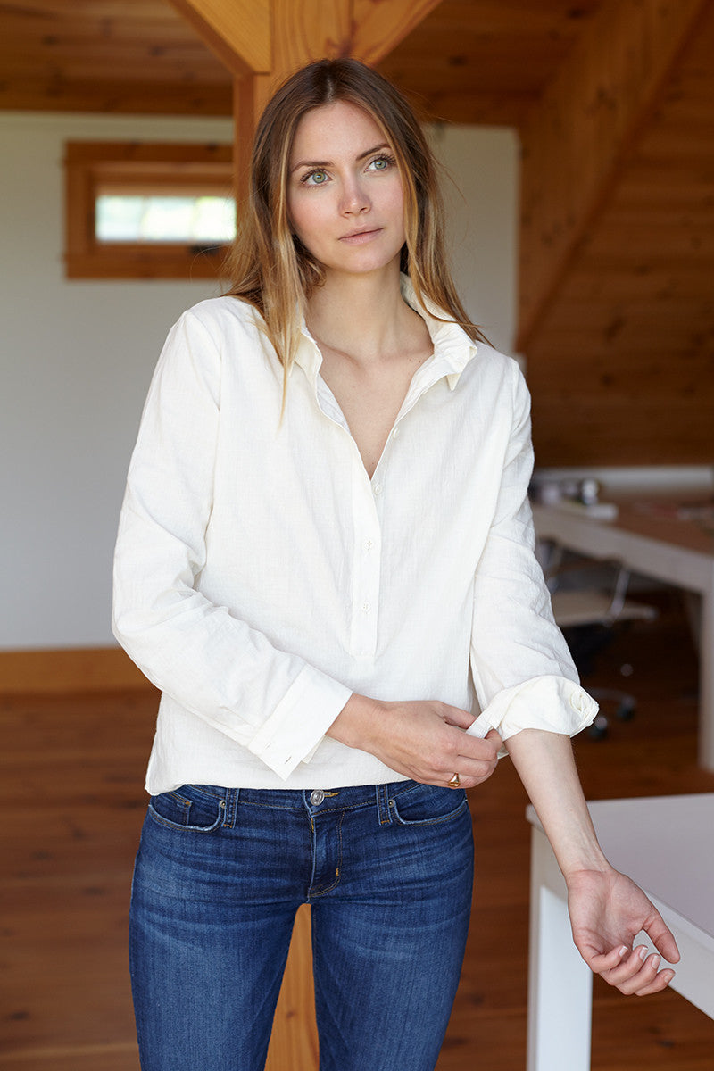 Best selling series blouse in a summer textured light ecru cotton. We have chosen to offer this blouse with black tie and matching ecru tie, so customers can completely...