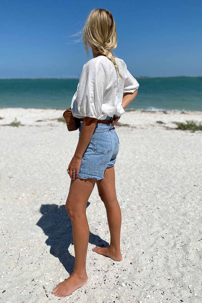 Washed Linen Square neckline Cropped boxy fit Hidden side zipper Lined Made in NYC XXS: 33" Bust, 18" Length XS: 35" Bust, 18.5" Length S: 37" Bust, 19" Length...