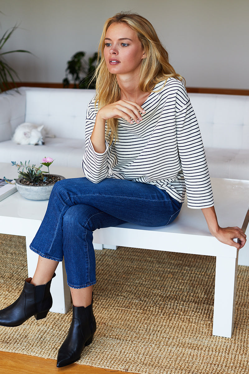 Cotton knit Boxy drop shoulder style boatneck pullover Both models are wearing a size small Hand wash cold/ air dry or dry clean Made in NYC XXS: Bust/Hip 38"",...