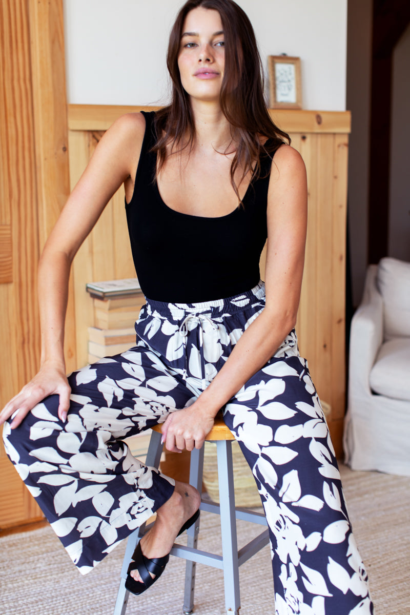 Sustainable Viscose Elastic drawstring waist Pockets Relaxed wide leg fit Made in NYC