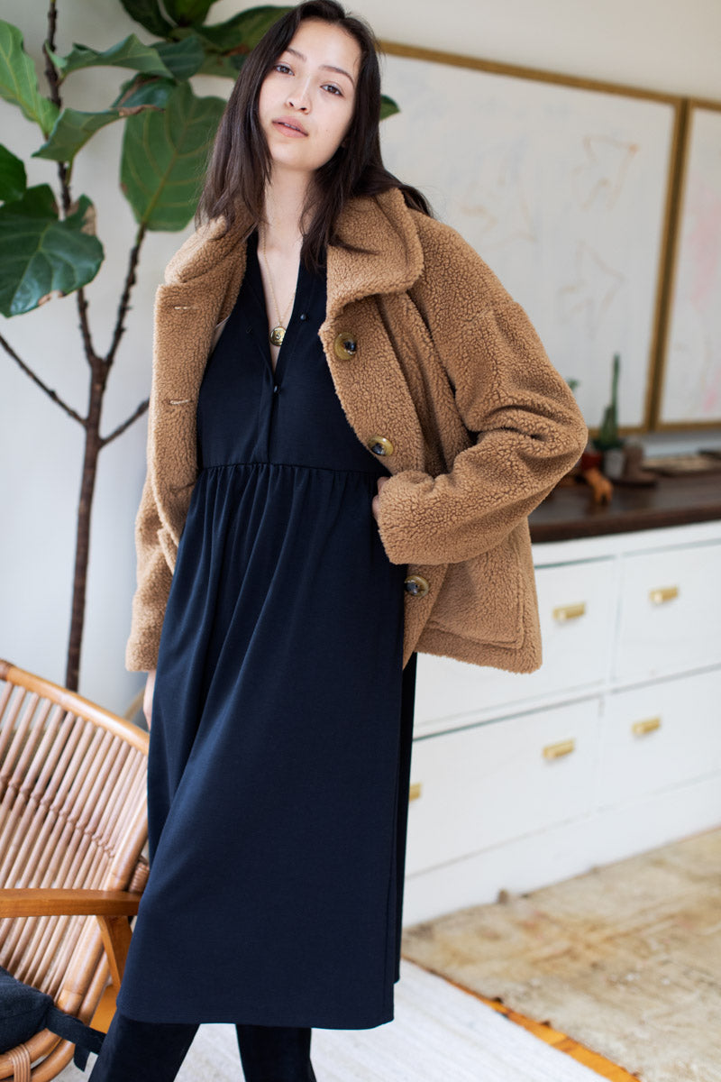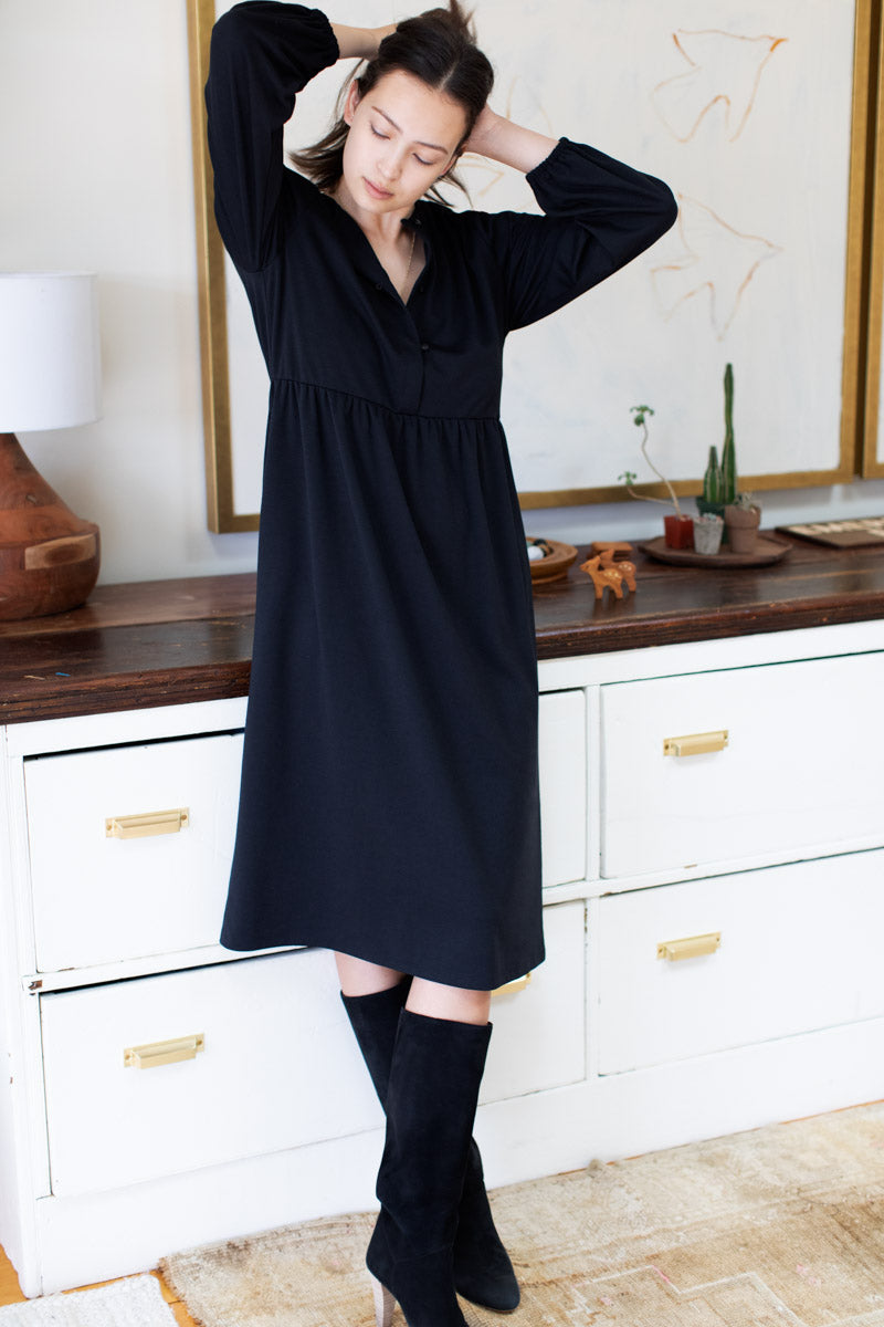 great to have a warm midi length dress for holiday/winter season. long lines + soft. pair w/ knee high boots to go to the thing or over leggings + lace...