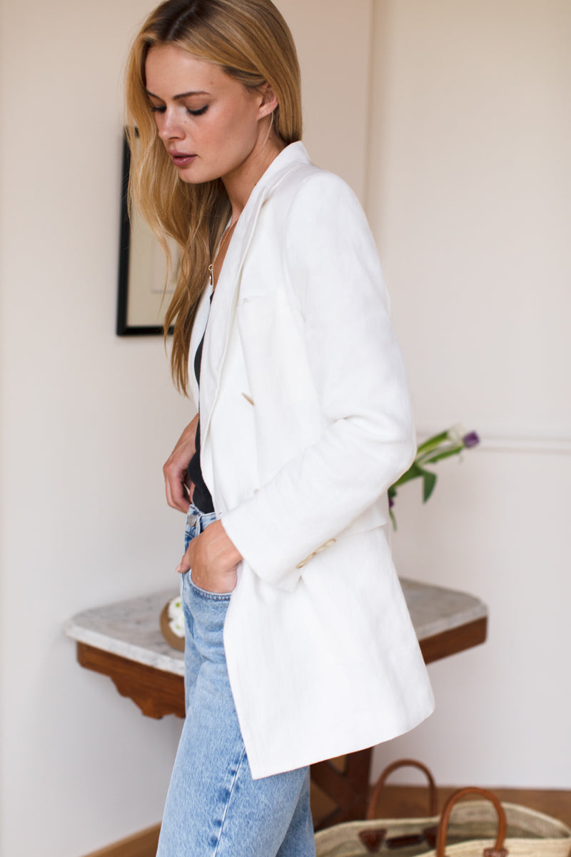 forever wardrobe, with denim, to work, with your favorite dress, season after season Linen 6 Button front Fully Lined Double breasted Front flap pockets Notched lapel Tailored bracelet length sleeves...