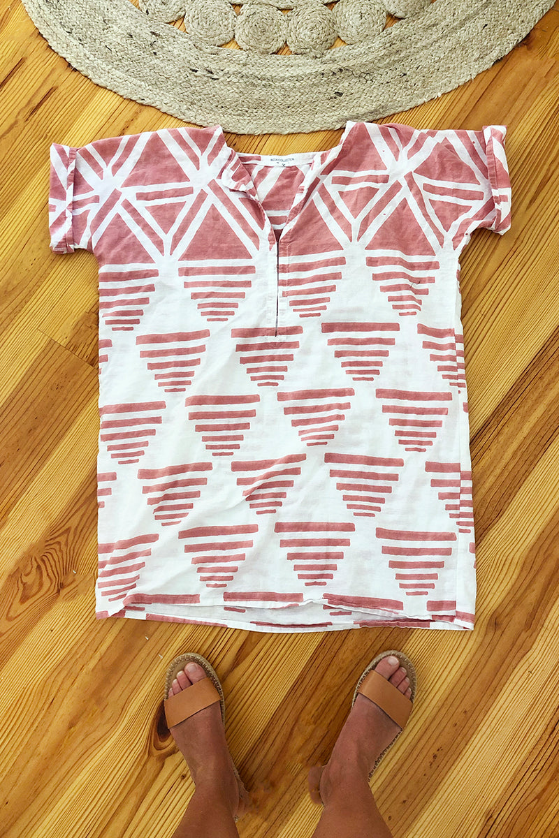 Can be worn with keyhole opening in front or back :) Made with Organic cotton Hand block printed w/ low impact dye Easy/breezy fit Pull on and go style Lined...