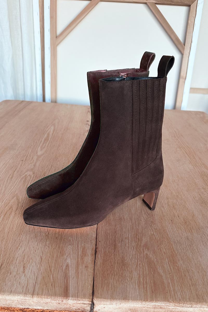 Made in a family run factory in Portugal. We are honored to work with this skillful, artful producer to make beautiful shoes for our customers. Suede construction 2.5" leather wrapped...