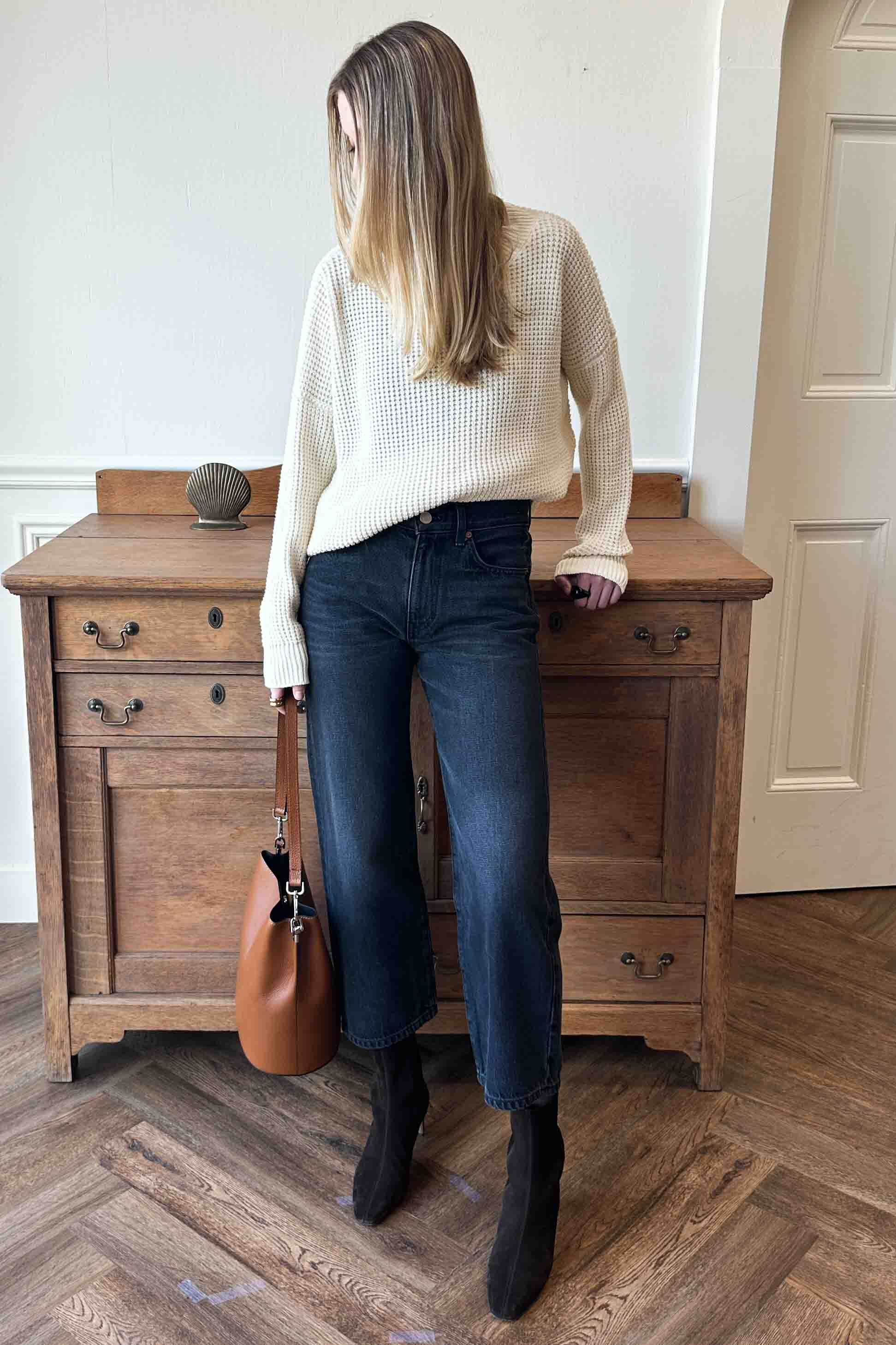 This boot is specifically made with a high shaft to be worn w/ ankle jean, maxi skirts + dresses w/ a clean line and no ankle show thru. Walkable sleek...
