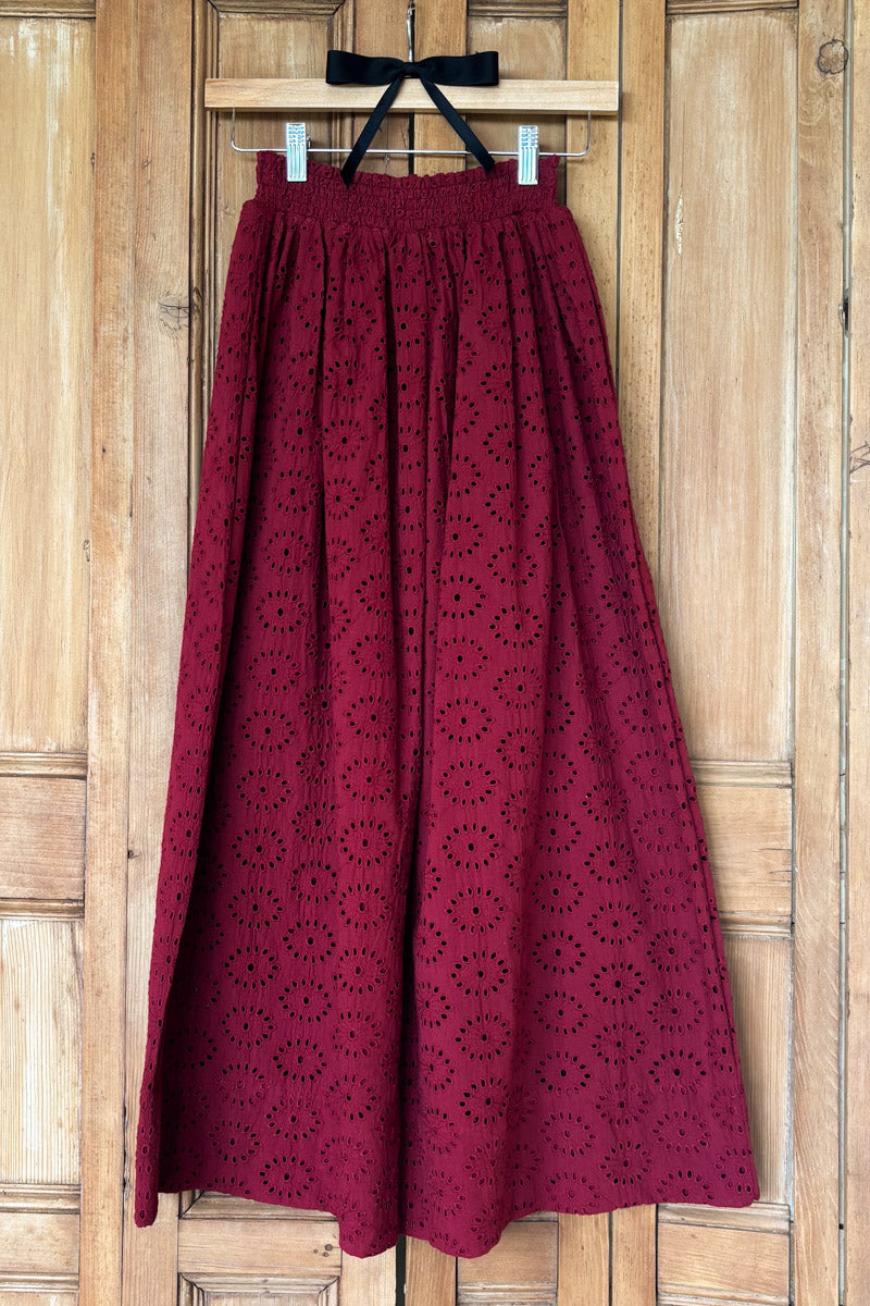 100% Cotton Eyelet Easy pull on styling Elastic shirred waist band Side seam pockets Subtle A-line shape Wide hem allowance Made in Rajasthan, India XS/S: Fits 20" to 28" waist,...