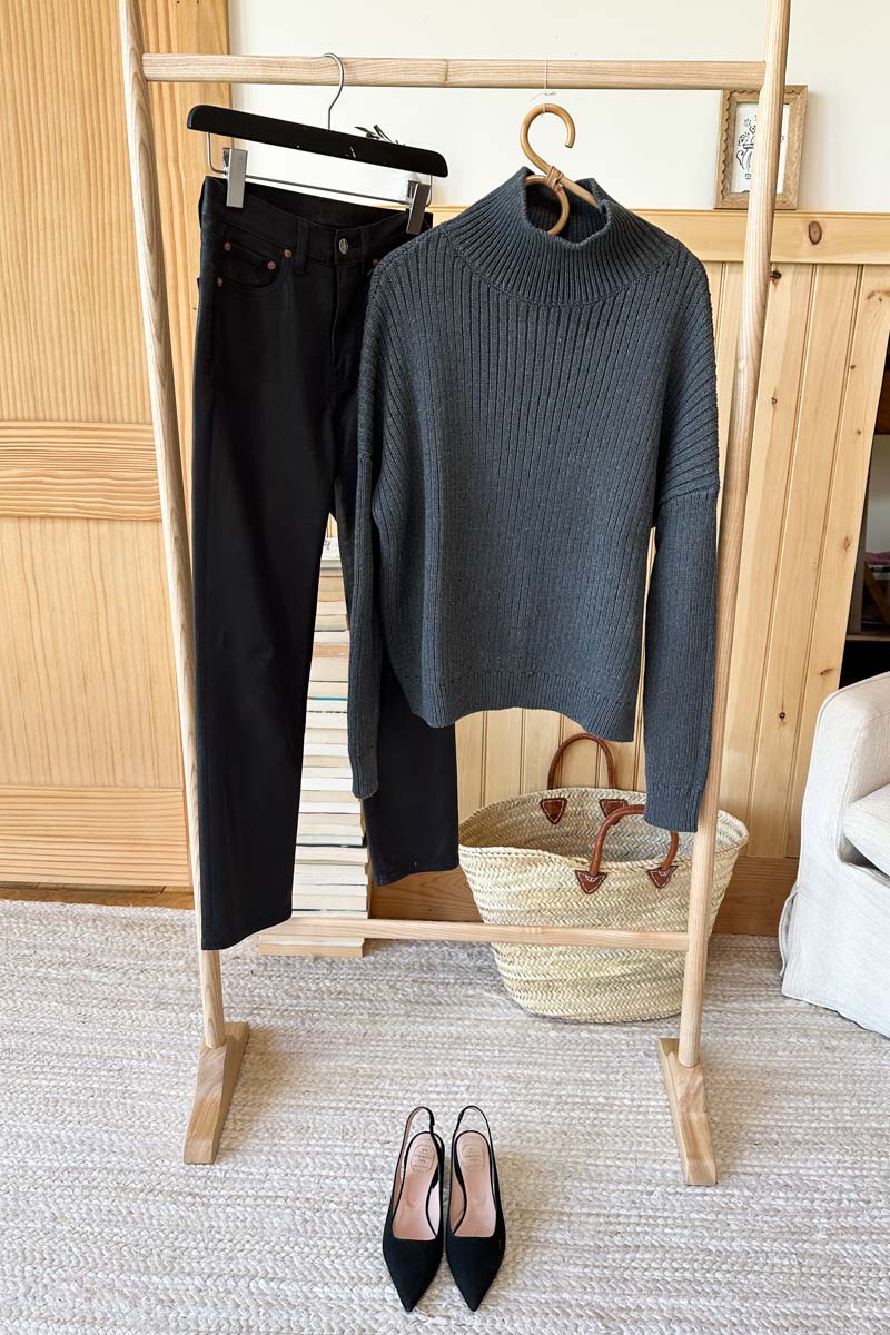A slightly structured Ponte: 67% Rayon, 28% Nylon, 5% Spandex Boxy mod fit in the body w/ a dropped shoulder Back collar/neck zipper 3" mock turtleneck collar Standard length sleeves...