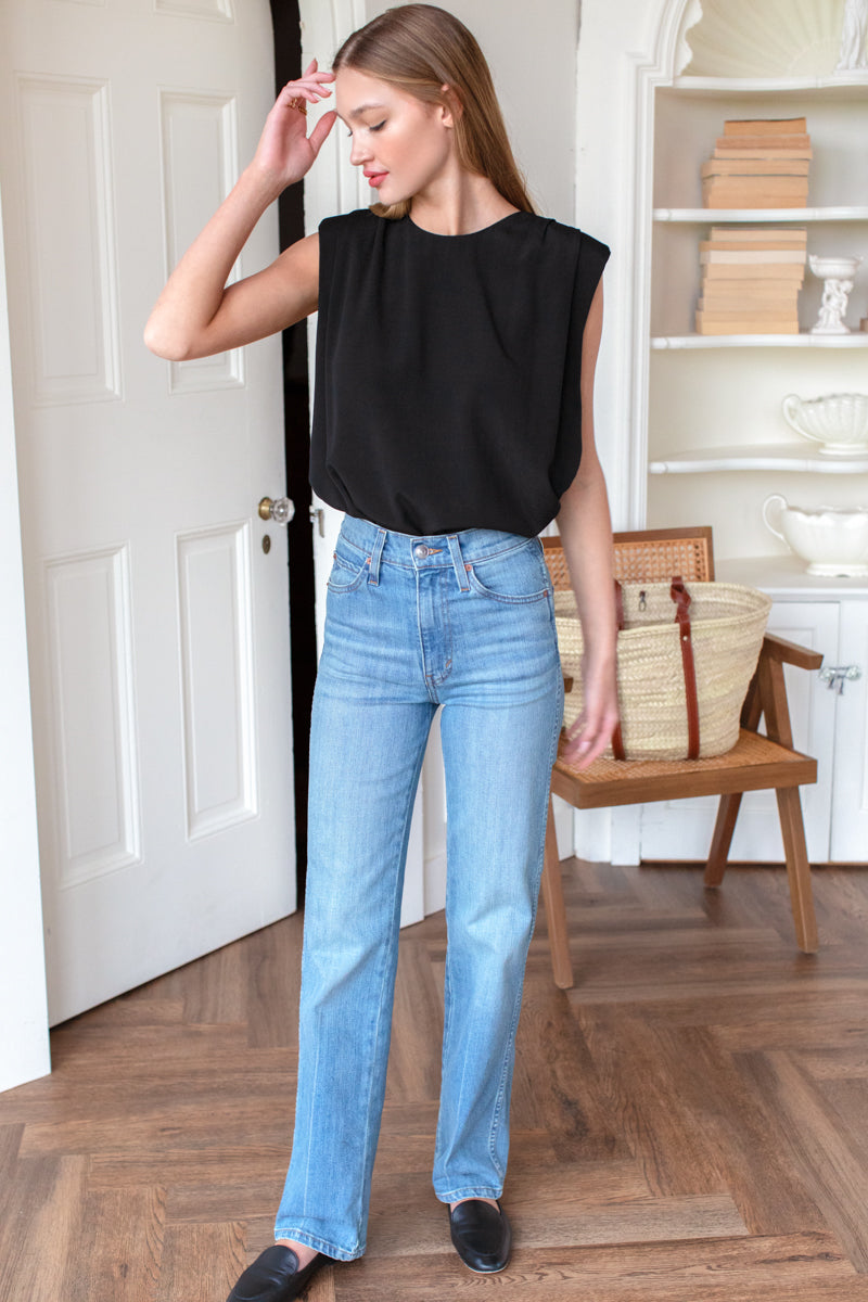 This high rise retro inspired fit sits high at the waist, slim through the hip and straight throughout for a full leg silhouette without being wide. The longer inseam is...