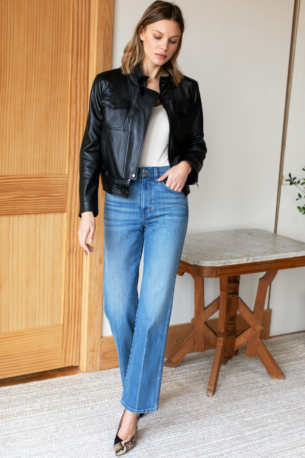 This high rise retro inspired fit sits high at the waist, slim through the hip and straight throughout for a full leg silhouette without being wide. The longer inseam is...
