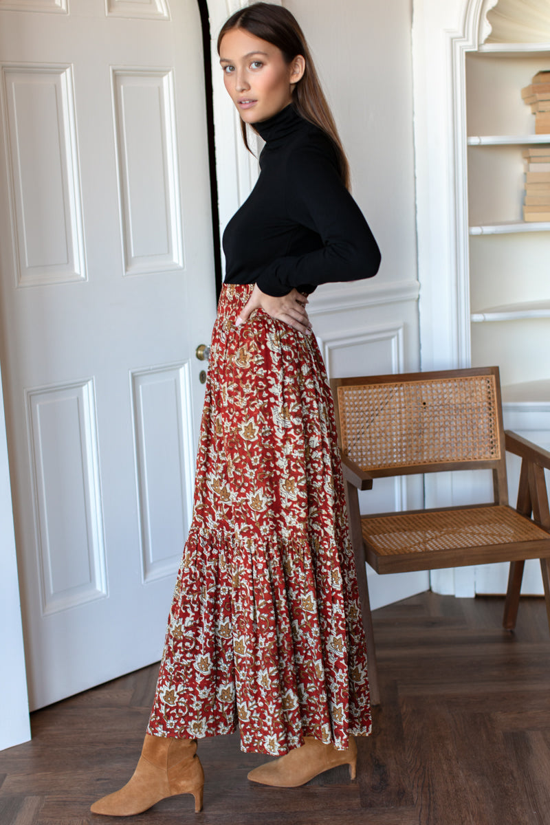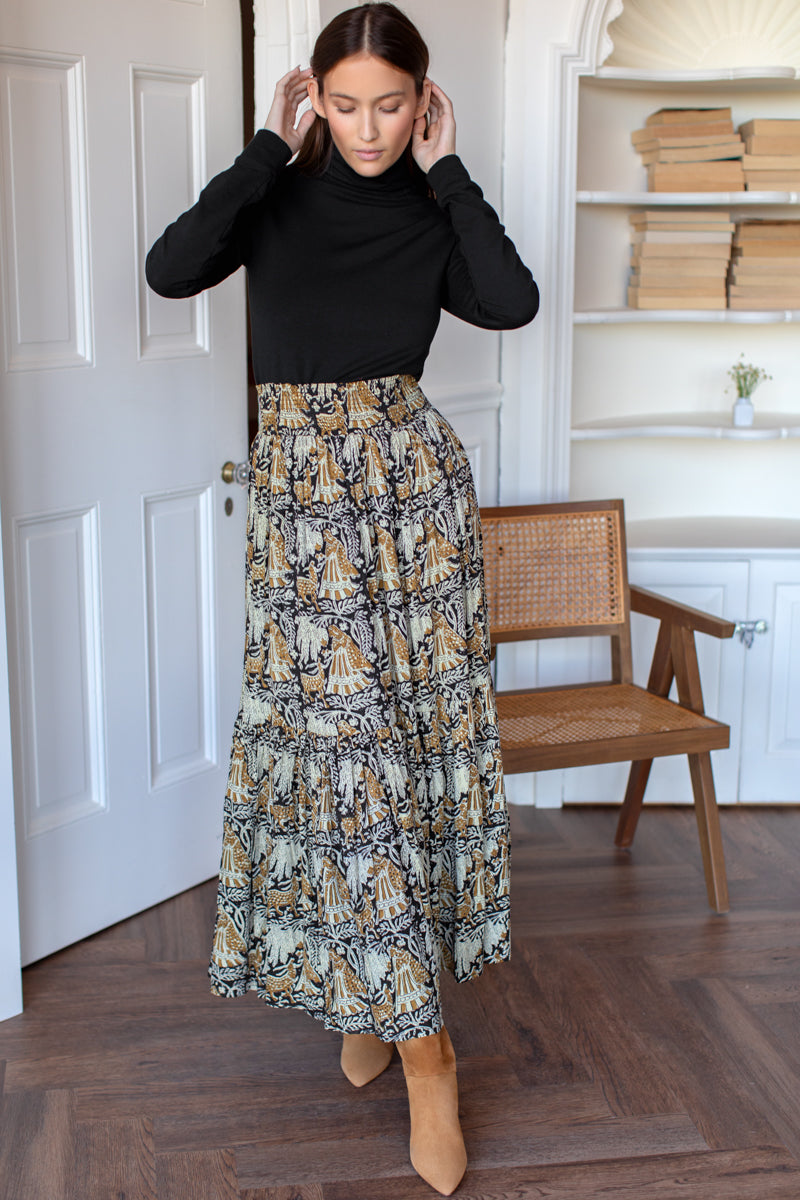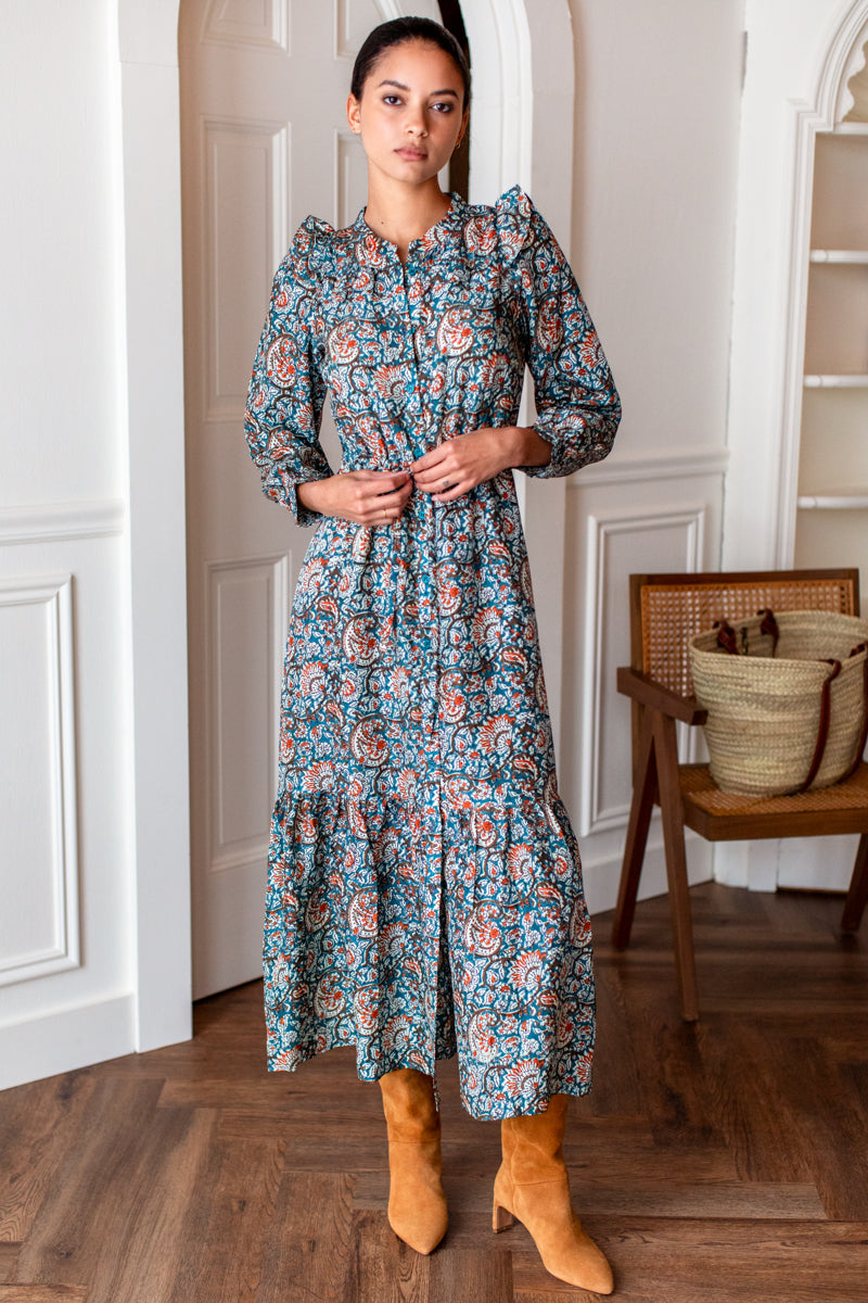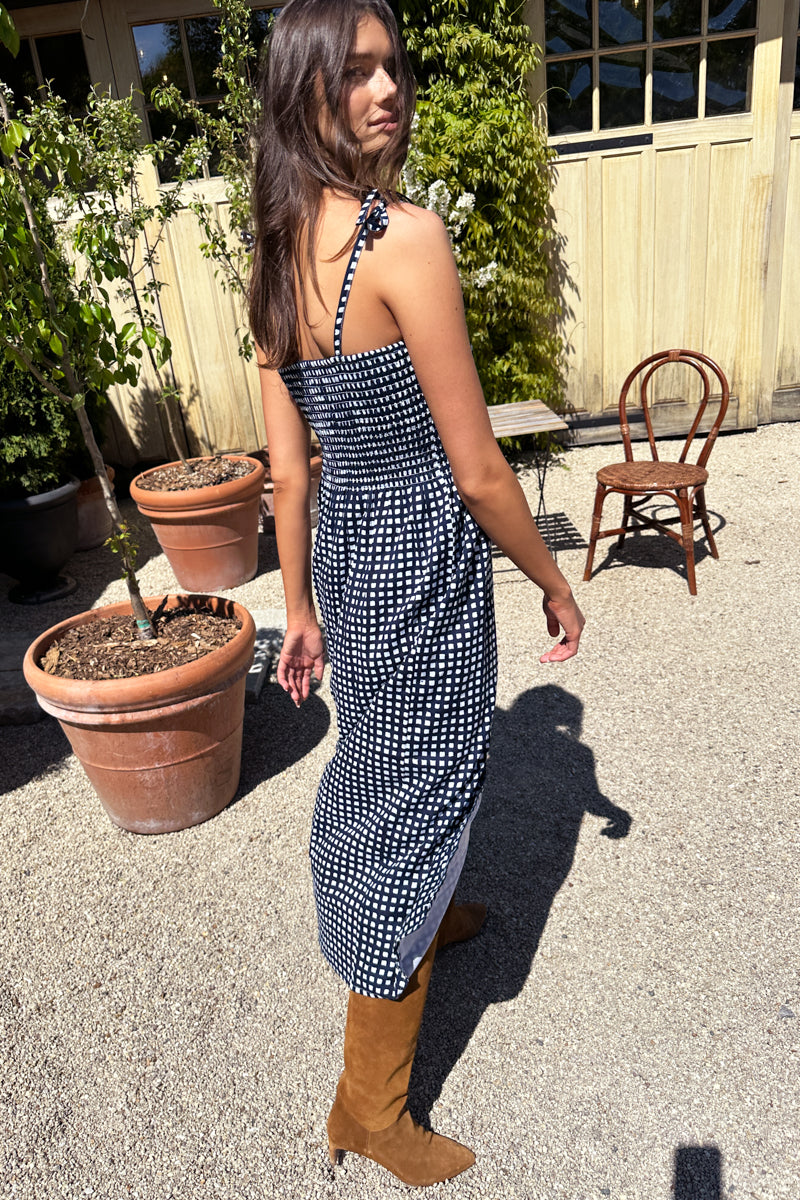Sustainable viscose Empire waist Skirt cut on the bias Adjustable straps tie at bust Side seam ties Elastic at shoulder and Cuff Bust is lined Hidden zipper Model is wearing...