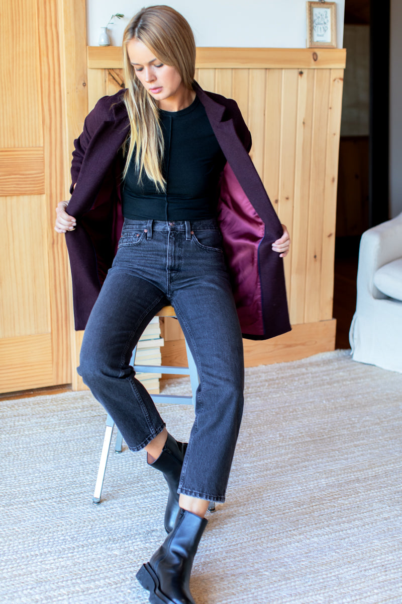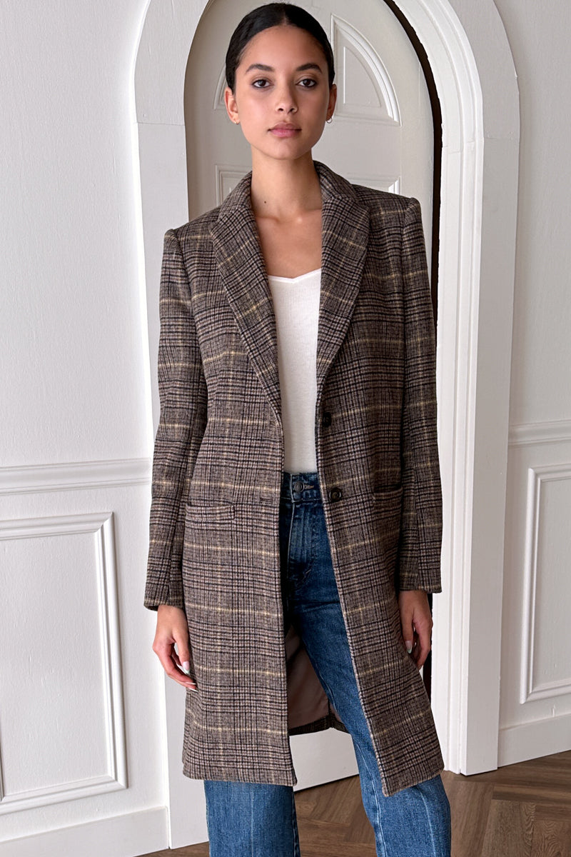 Wool cashmere 2 button front closure Front welt pockets Full length sleeves Flannel back liner - fully lined Dry clean only Made in NYC with ❤ Size 00: Center back...