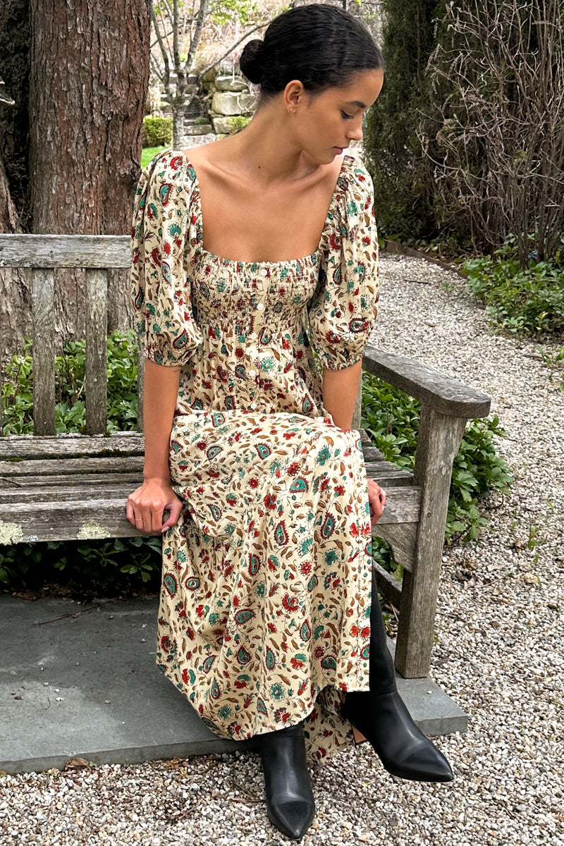 comfortable, timelessly feminine silhouette. side seam pockets, smocked elastic back panel for comfort and perfect fit thru the bodice. (we strive to make garments comfortable and self-fit to wearer) Jour...