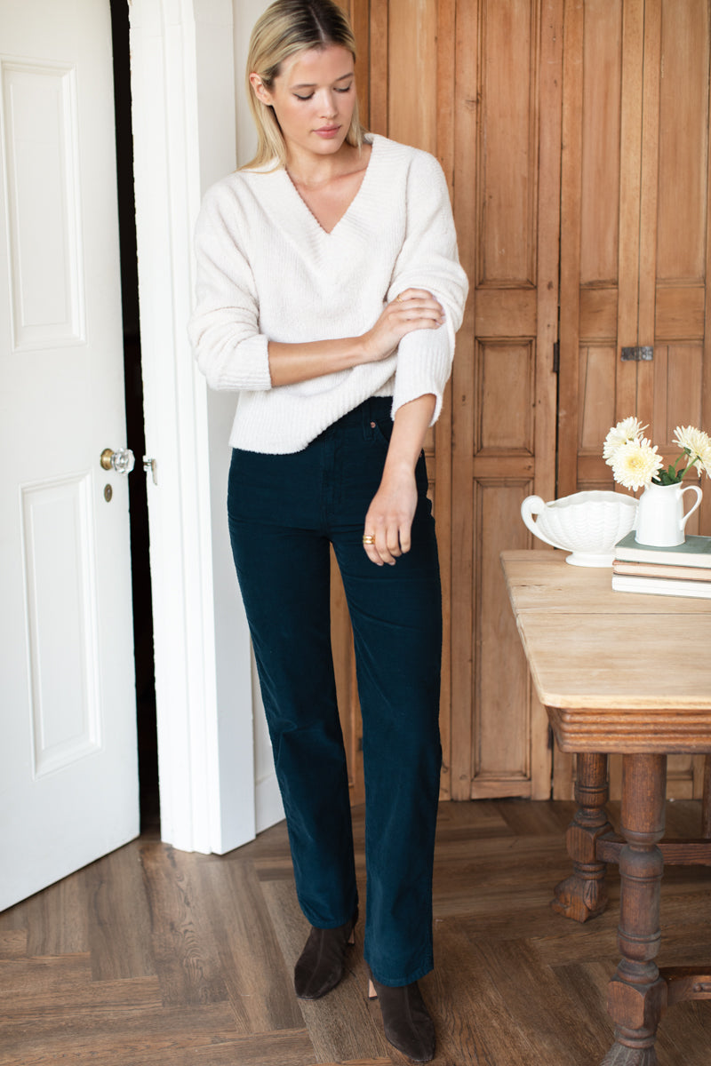 This high rise retro inspired fit sits high at the waist, slim through the hip and straight throughout for a full leg silhouette without being wide. The longer inseam is...